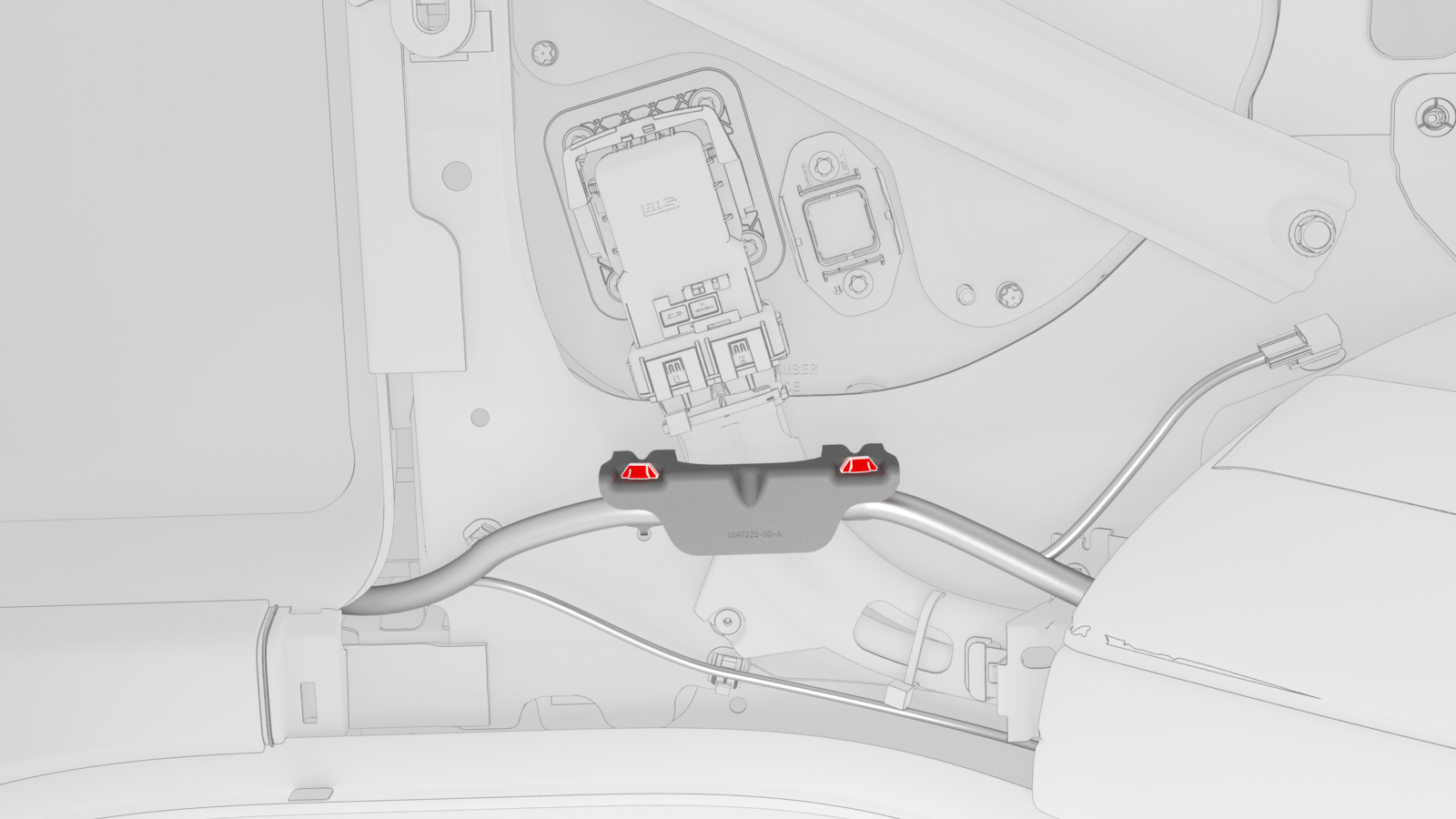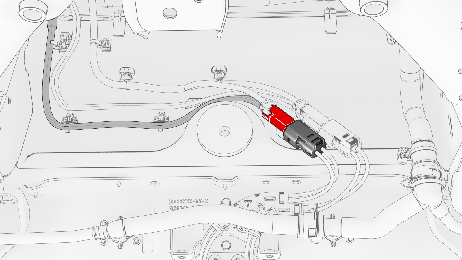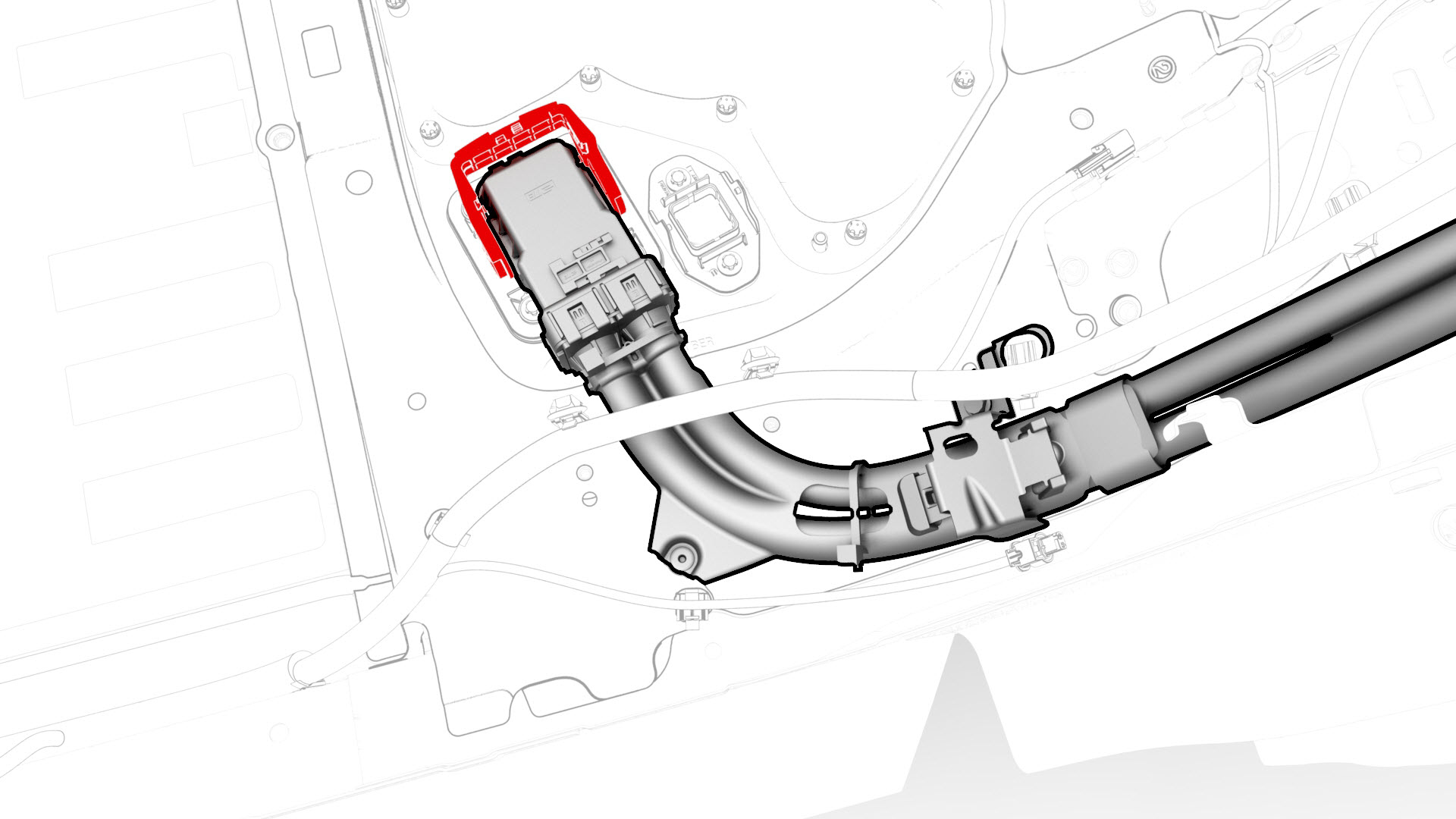 ![]() | 12 | Slide the security tab to the unlock position, release the locking handle, and then disconnect the charge port electrical harness from the penthouse DC input connector. | |