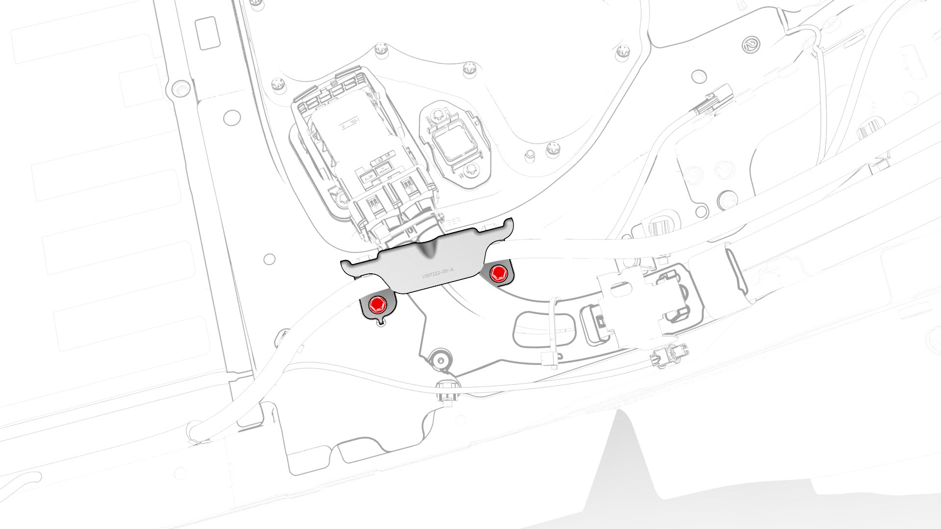 ![]() | 10 | Remove the bolts that attach the charge port to HV battery harness bracket at the penthouse, and then remove the bracket from the vehicle. | |