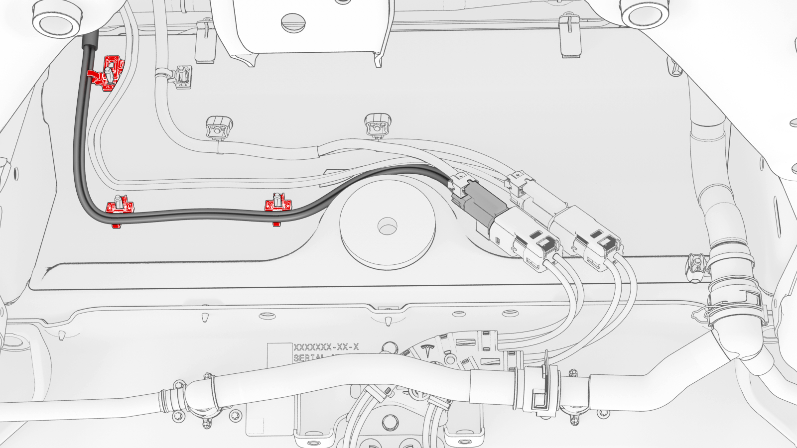 ![]() | 32 | Install the clip that attaches the charge port electrical harness to the vehicle. | |