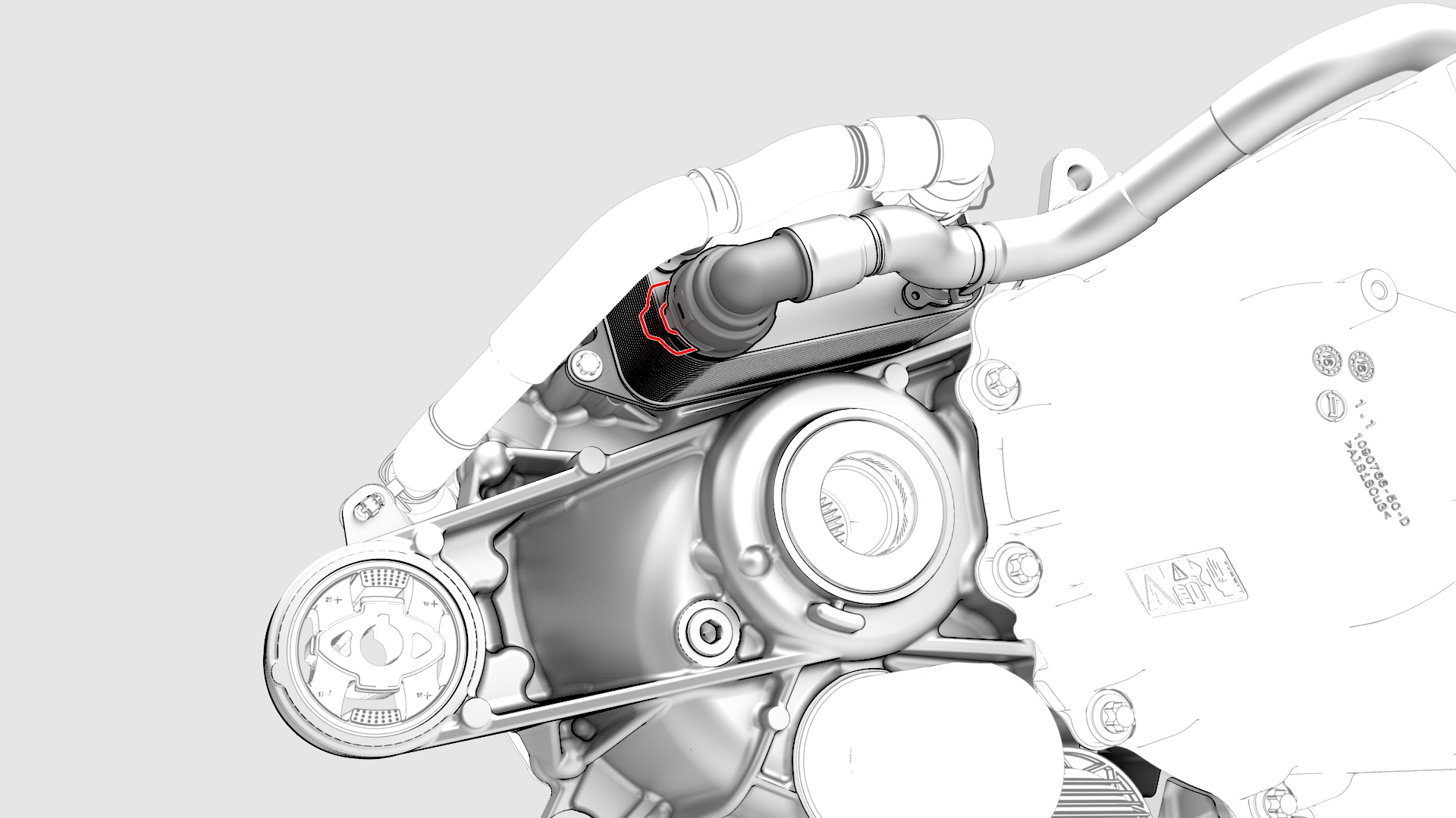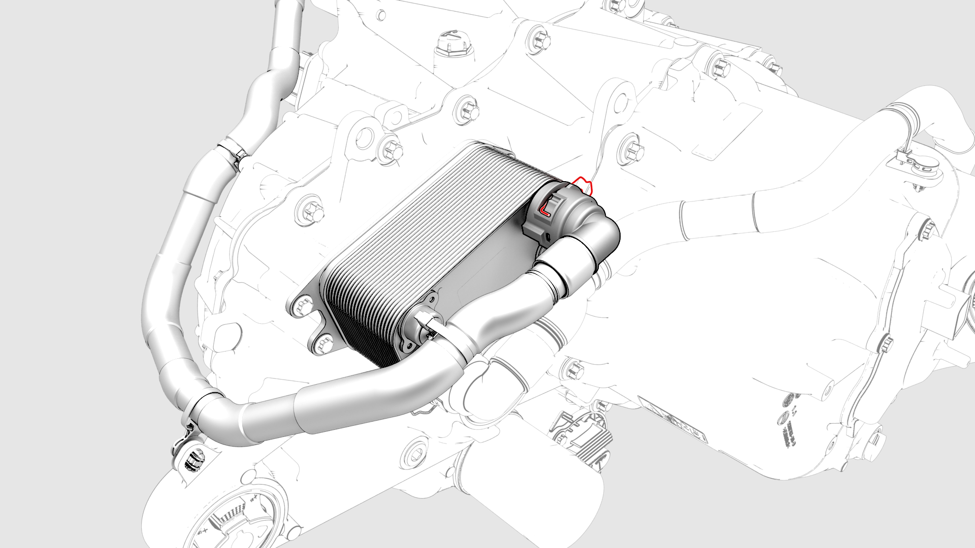 ![]() | 4 | Install the coolant outlet hose to the cooler, and then attach the hose with spring clip. Caution: Perform a push-pull test to verify that the hose is fully seated.