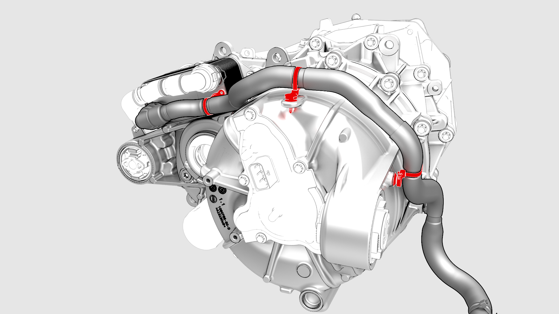 ![]() | 5 | Release the clips that attach the inverter-to-cooler hose to the rear drive unit. | |