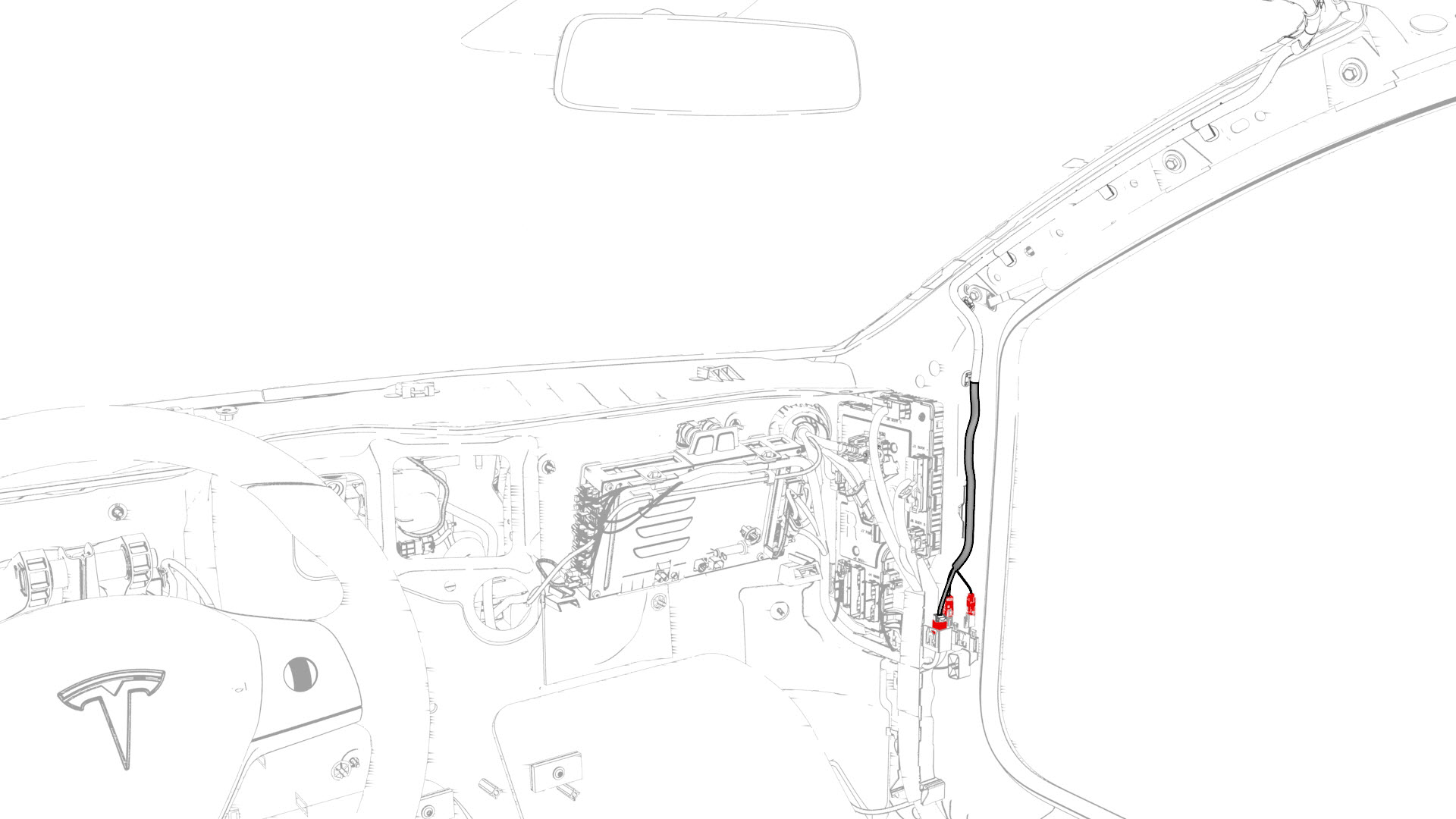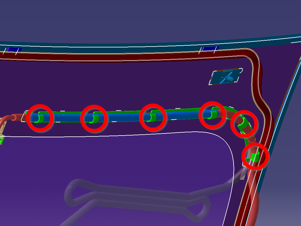 | 15 | Secure the clips (x6) that attach the windshield electrical harness to the RH A-pillar area. | ||