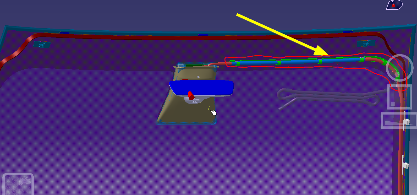 ![]() | 21 | Secure the wire to the starter tool and push the tool through the urethane at the RH lower side of the windshield. | |