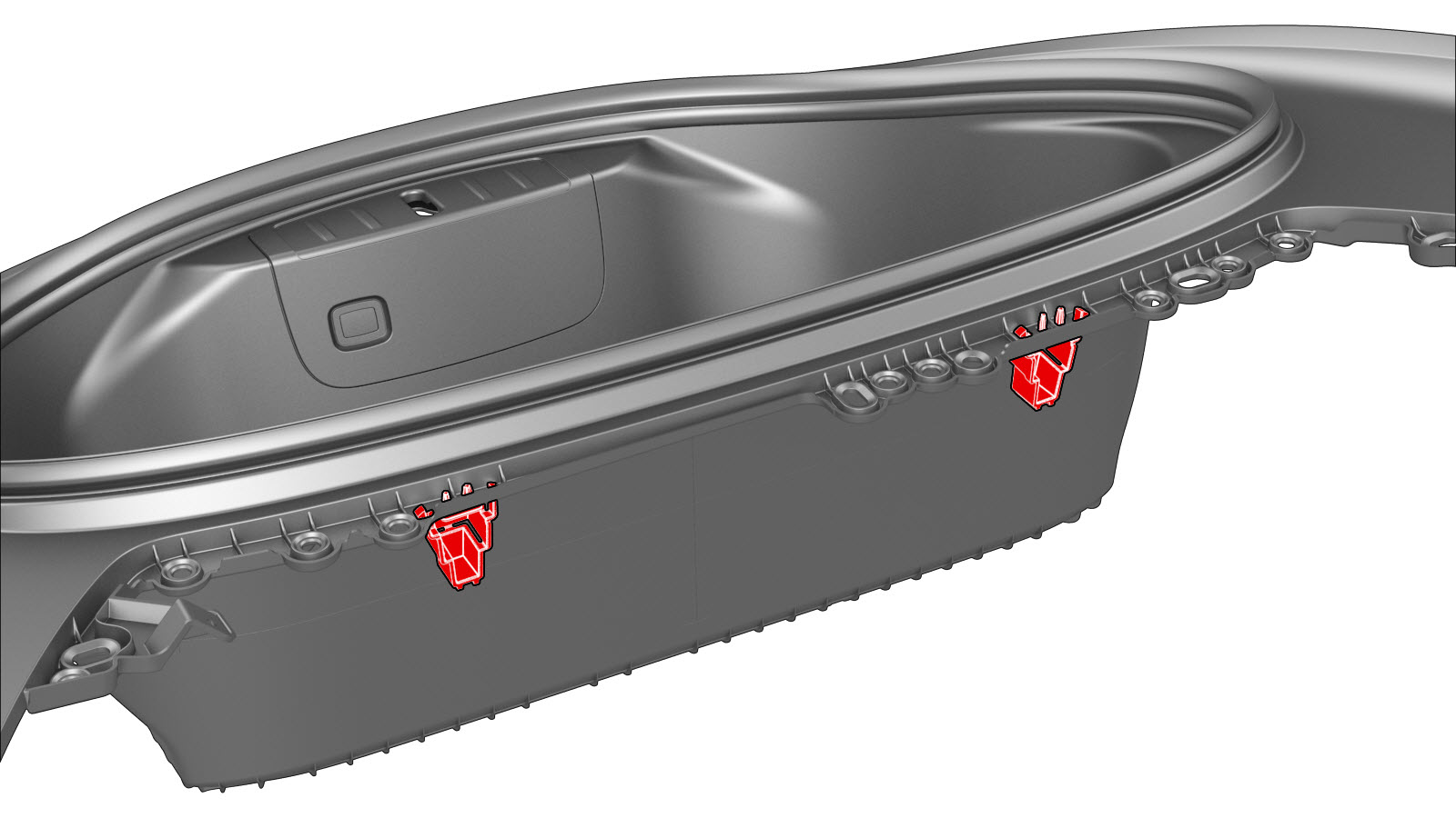 ![]() | 1 | Install the reinforcement clips that are attached to the underhood storage unit, if installing a new the underhood storage unit. Otherwise, skip to the next step if reusing the underhood storage unit. | |