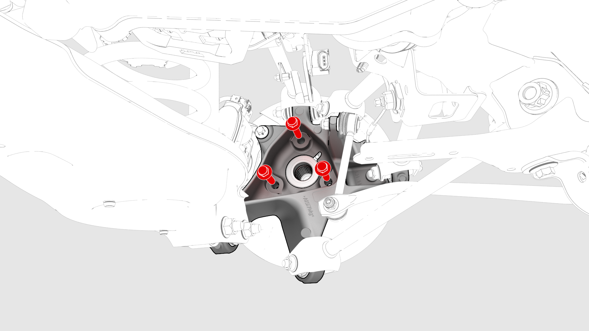 ![]() | 3 | Remove and discard the bolts that attach the LH rear hub to the knuckle, and remove the hub from the vehicle.![]() Torque 85 Nm ![]() |