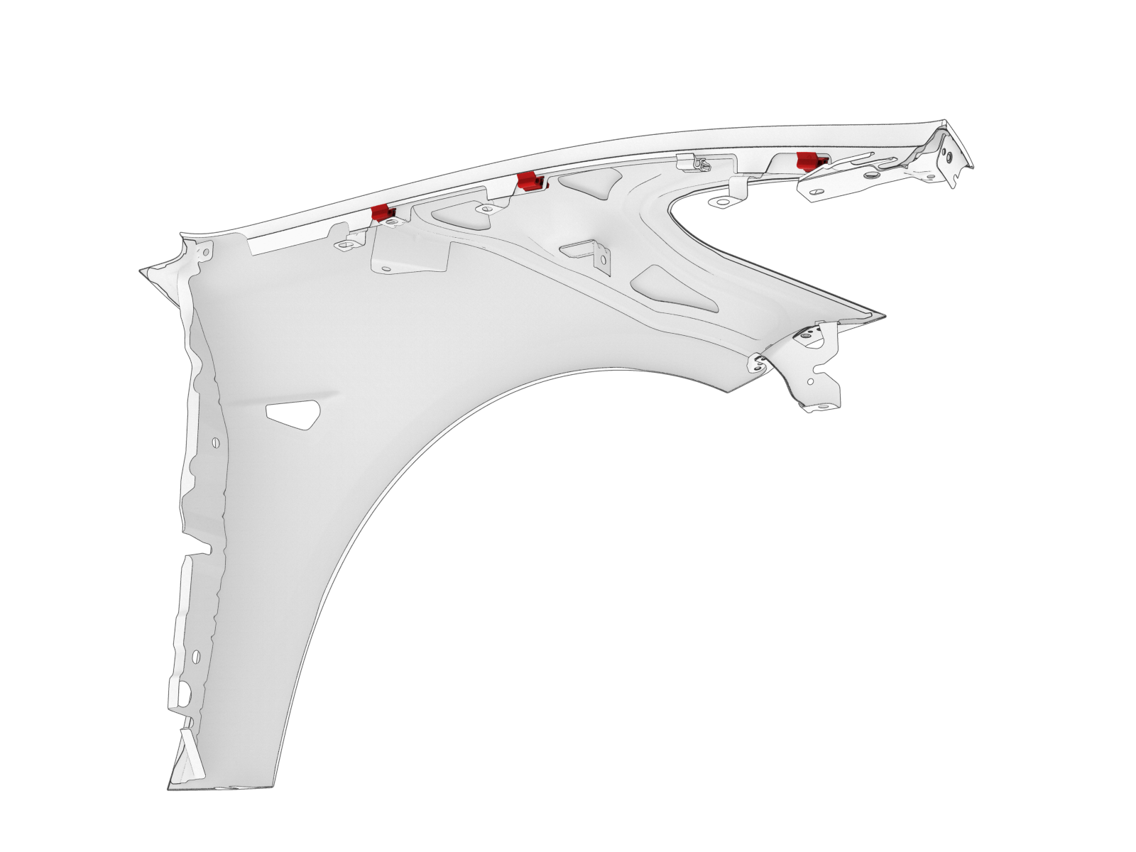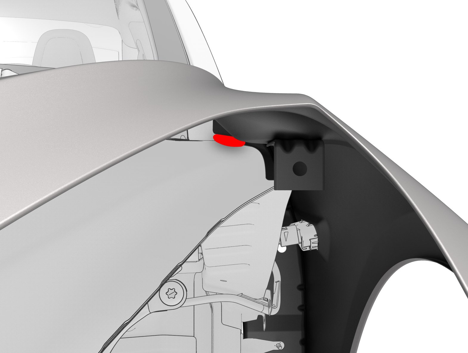 ![]() | 1 | Install the underhood storage unit clips (3x) on the new LH front fender. Note: Replace any broken or damaged clips.