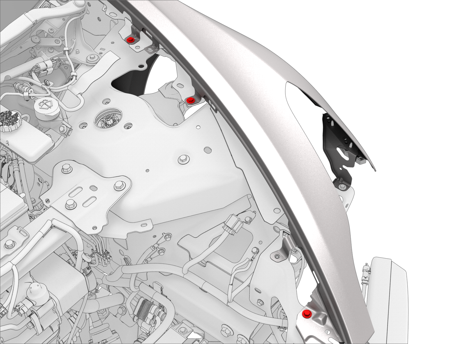 ![]() | 10 | Remove the bolts that attach the upper LH front fender to the vehicle. | |