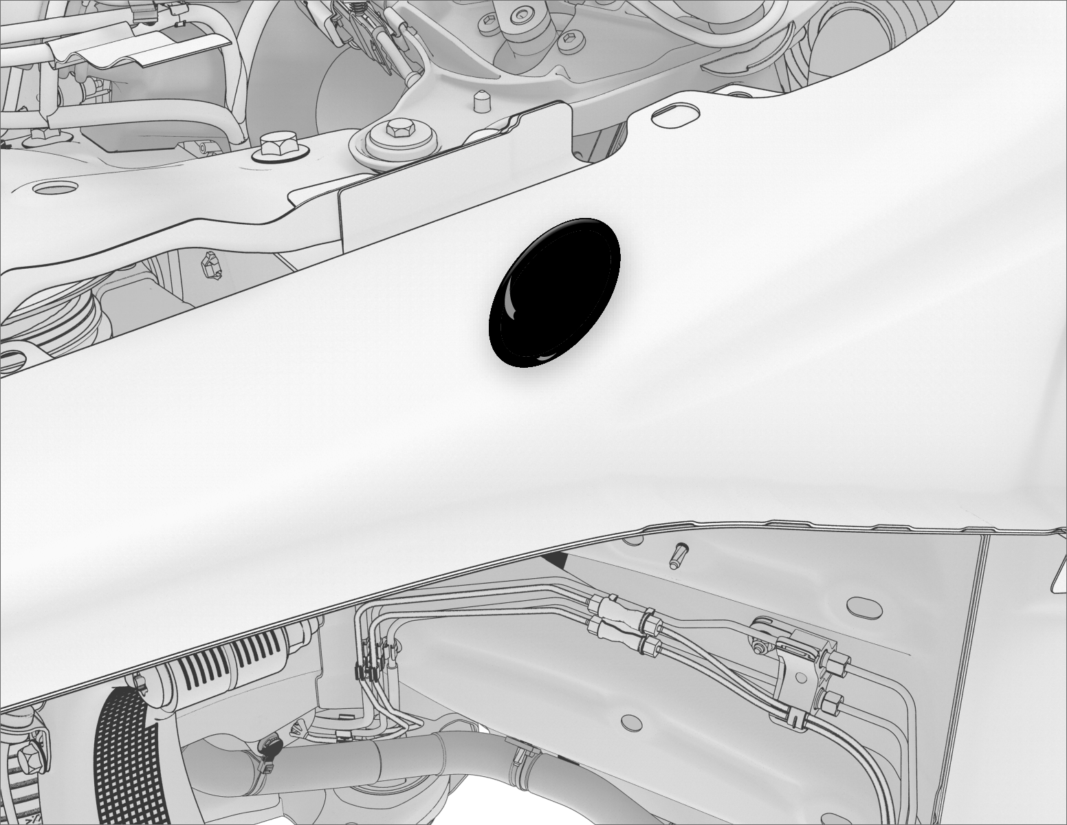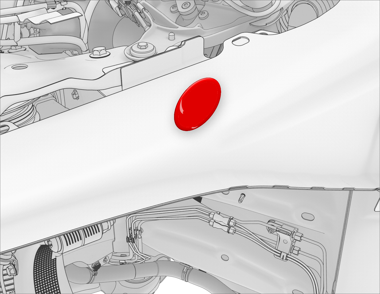 ![]() | 11 | Remove the bolt that attaches the lower LH front fender to the vehicle. | |