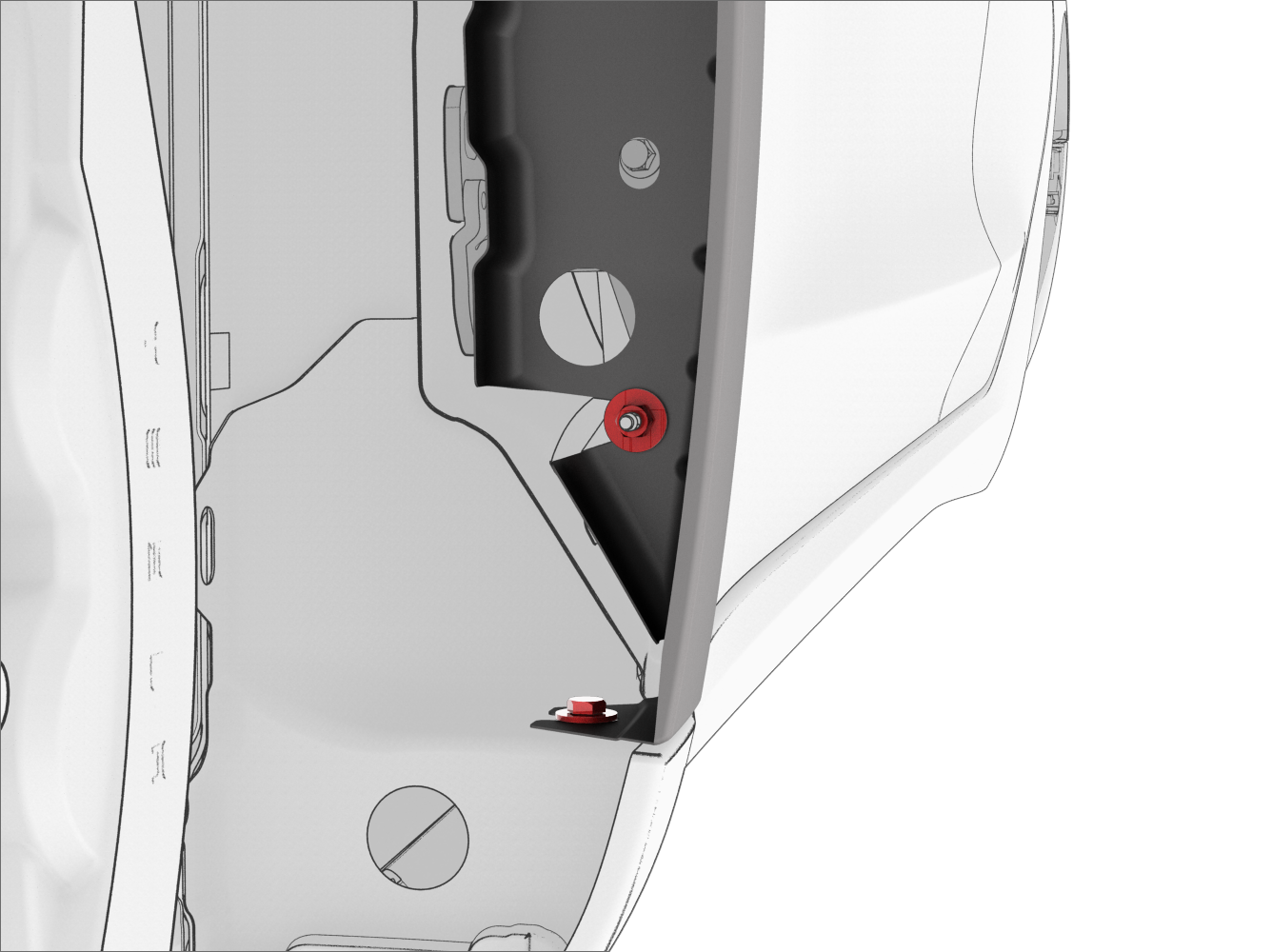 ![]() | 9 | Install the bolt that attaches the lower LH front fender to the vehicle.![]() Torque 9.8 Nm | |