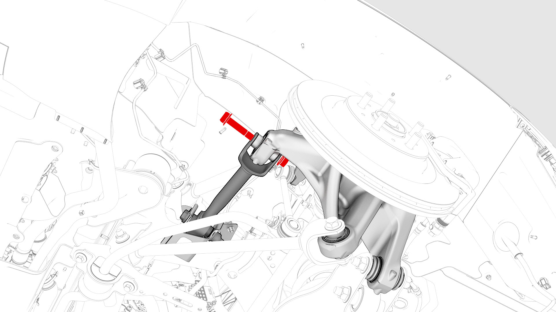 ![]() | 18 | With an assistant, hand-tighten the bolt and nut that attach the upper aft link to the knuckle. Note: The bolt and nut will