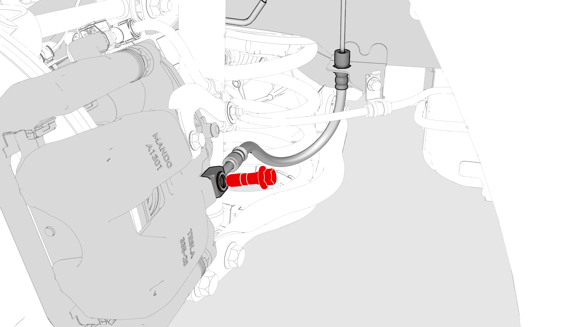 ![]() | 1 | Install a new bolt and washers (x2) to the brake hose. | |