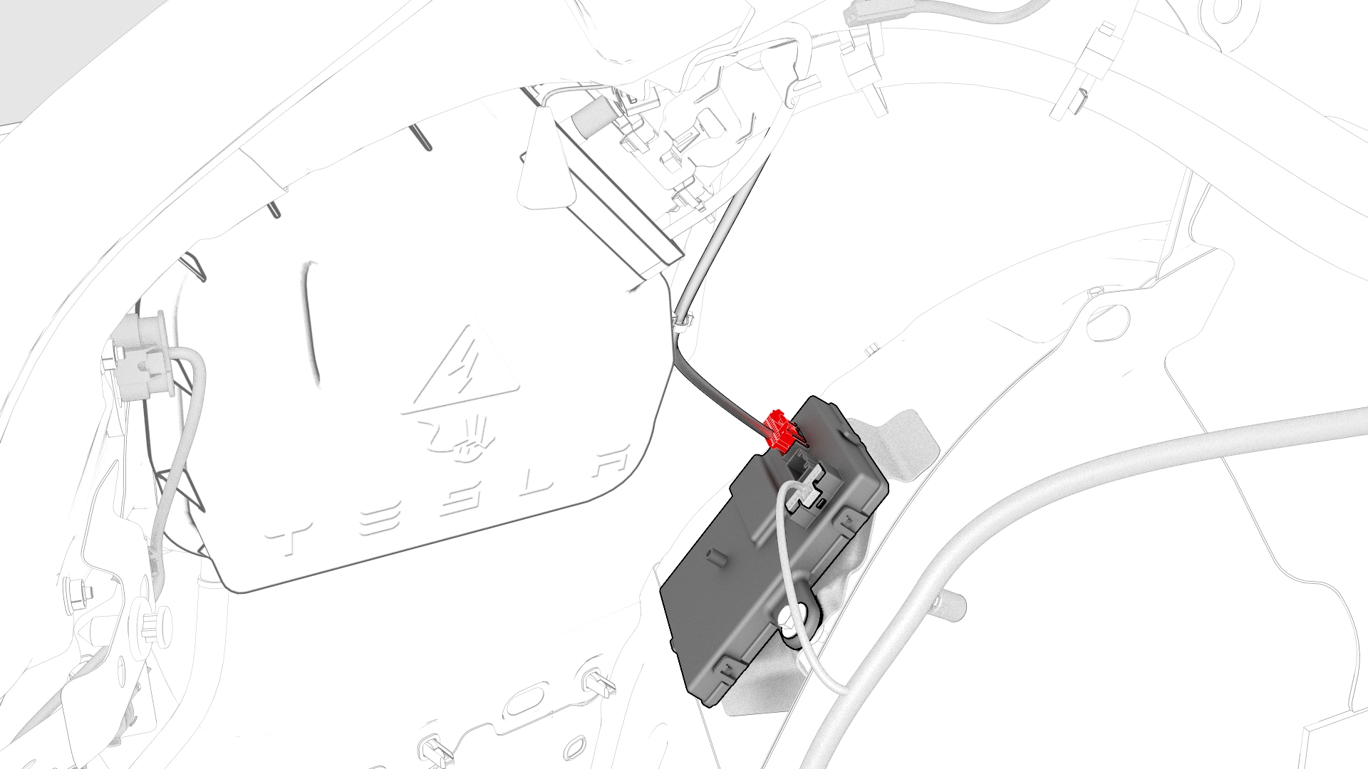 ![]() | 14 | Disconnect the low voltage electrical harness from the charge port ECU connector. | |