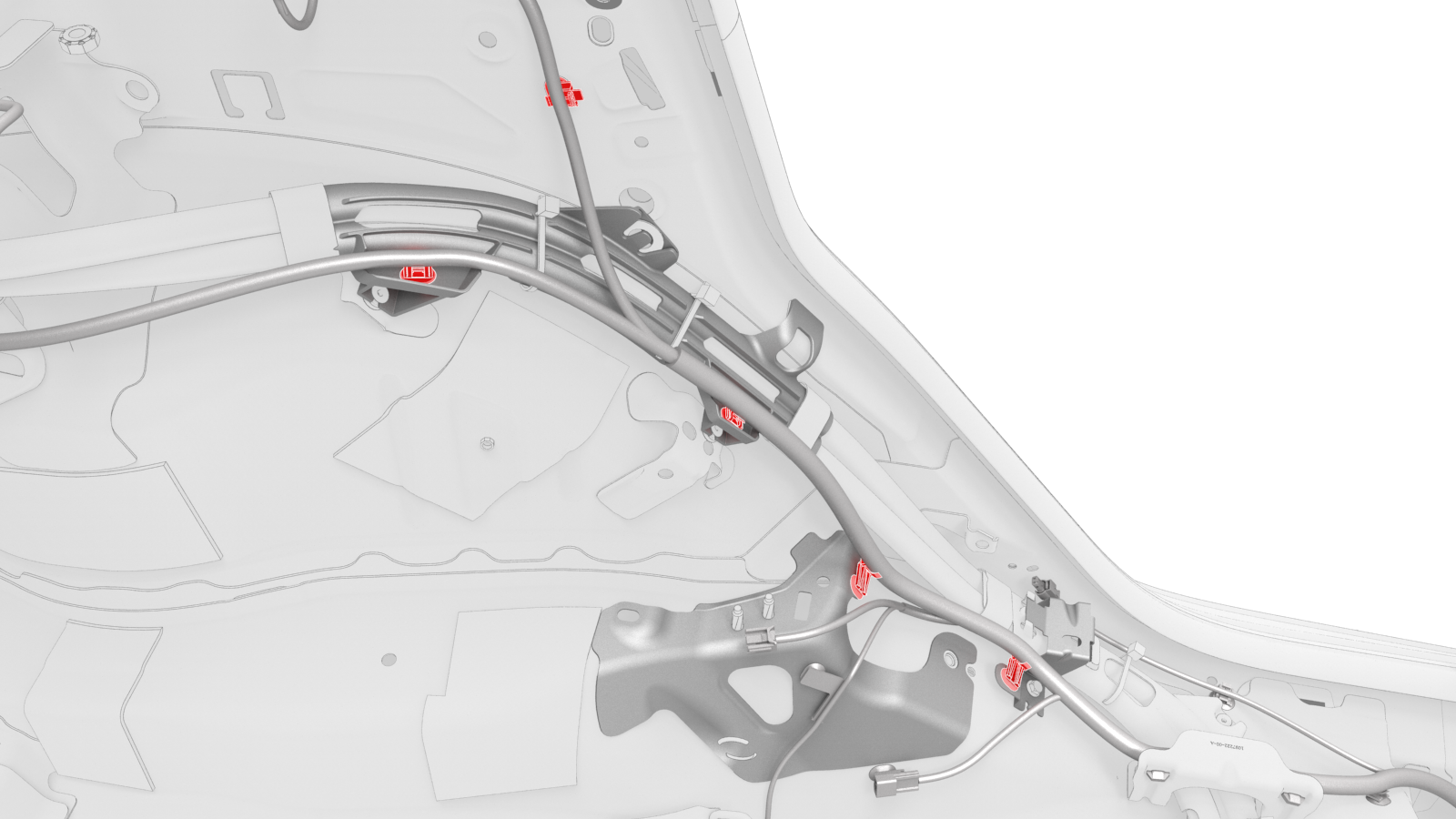 ![]() | 13 | Release the edge clip that attaches the low voltage electrical harness to the charge port closeout panel. | |