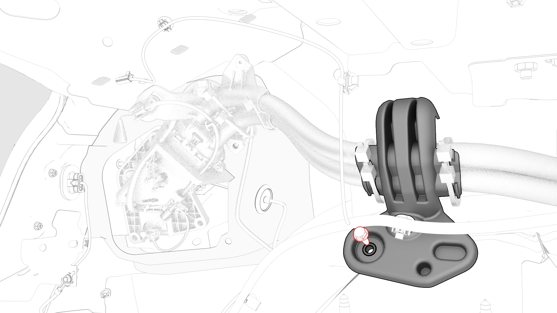 ![]() | 20 | Remove the bolt that attaches the charge port to HV battery harness bracket on top of the rear LH wheel well.![]() Torque 6 Nm | |