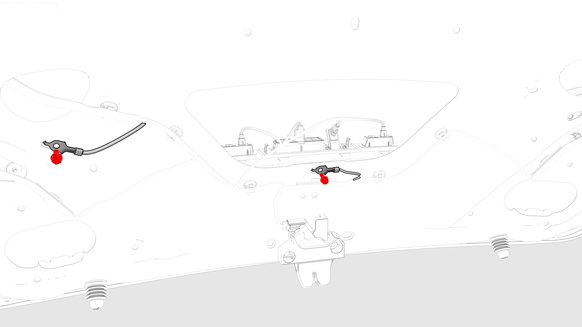 ![]() | 5 | Connect the trunk electrical harness to the RH and LH license plate light connectors, the trunk handle connector, and the backup camera connector. | |