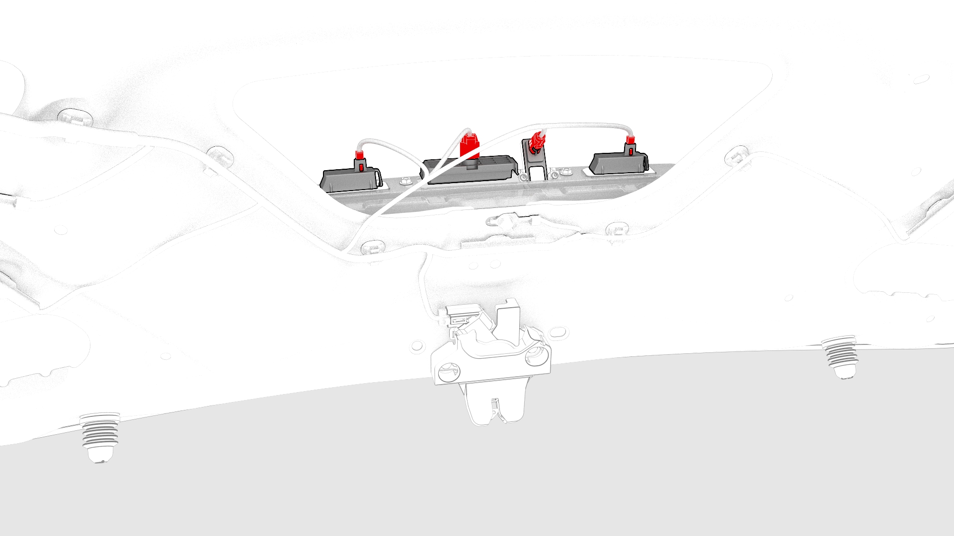 ![]() | 7 | Disconnect the backup camera connector, the trunk handle connector, and the LH and RH license plate light connectors. | |