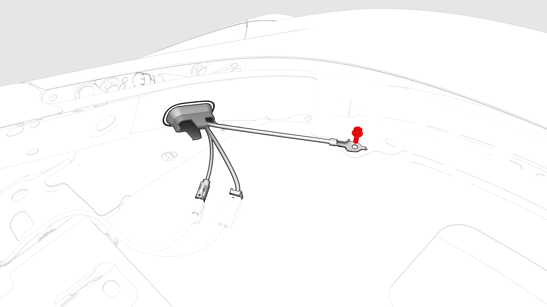 ![]() | 9 | Remove and discard the bolts (x2) that attach the trunk electrical harness ground straps to the trunk lid. | |