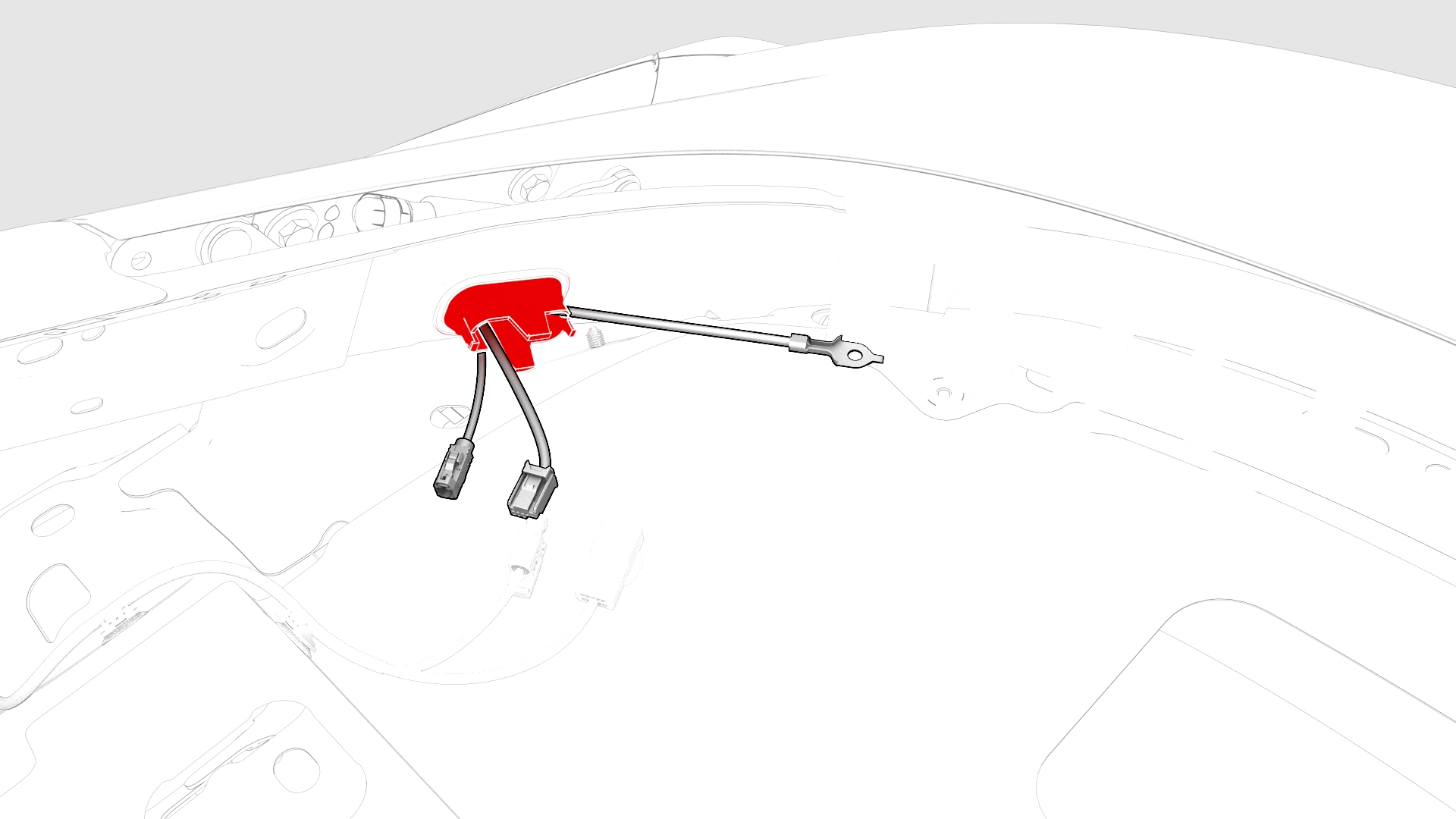 ![]() | 10 | Connect the trunk electrical harness connectors. | |