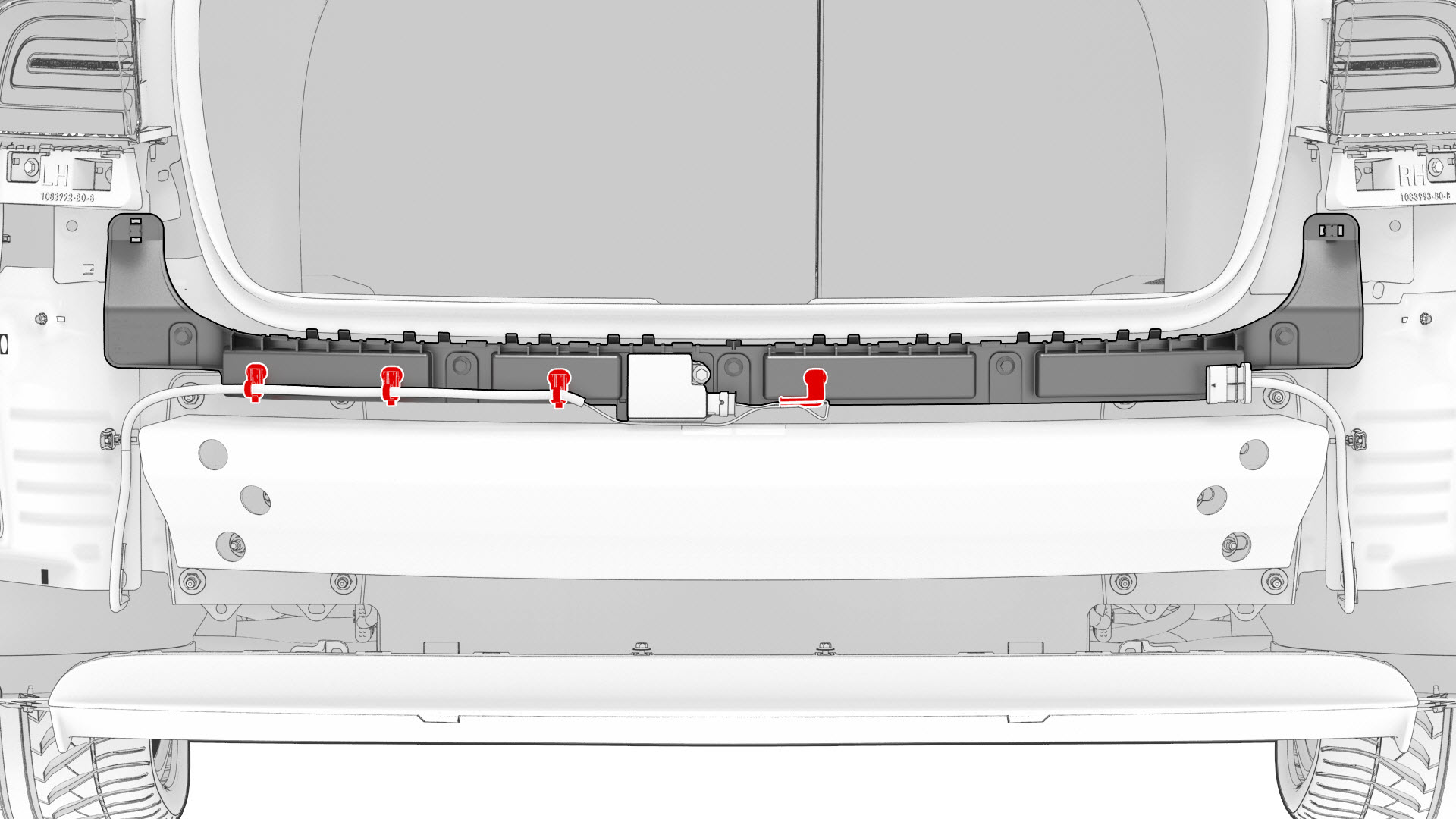 ![]() | 4 | Install the clips that attach the rear Bluetooth passive entry antenna electrical harness to the rear center bracket assembly. | |