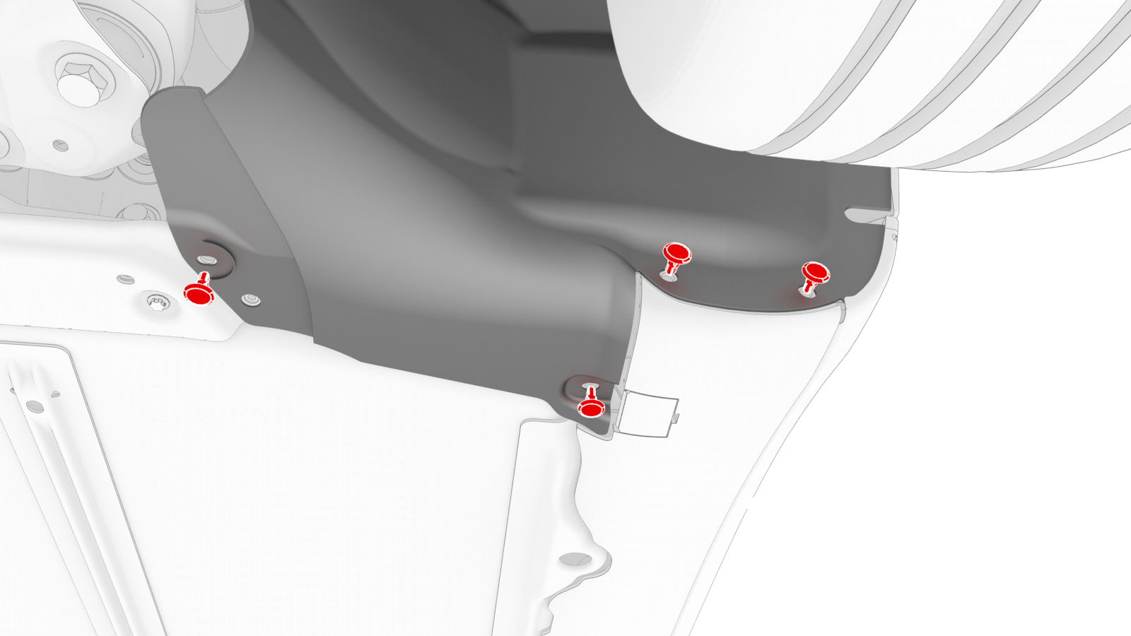 | 7 | Pull the LH and RH wheel liners back, and then attach the liners to the subframe with bungee straps. | ||