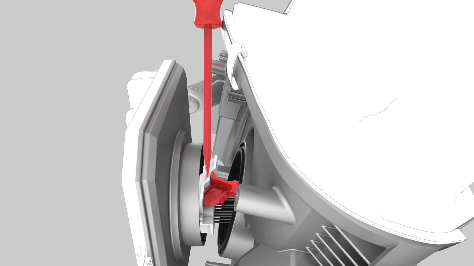 Note: Press the headlight ECU downward, and then turn it to align the fastener holes and anti-rotating guides.