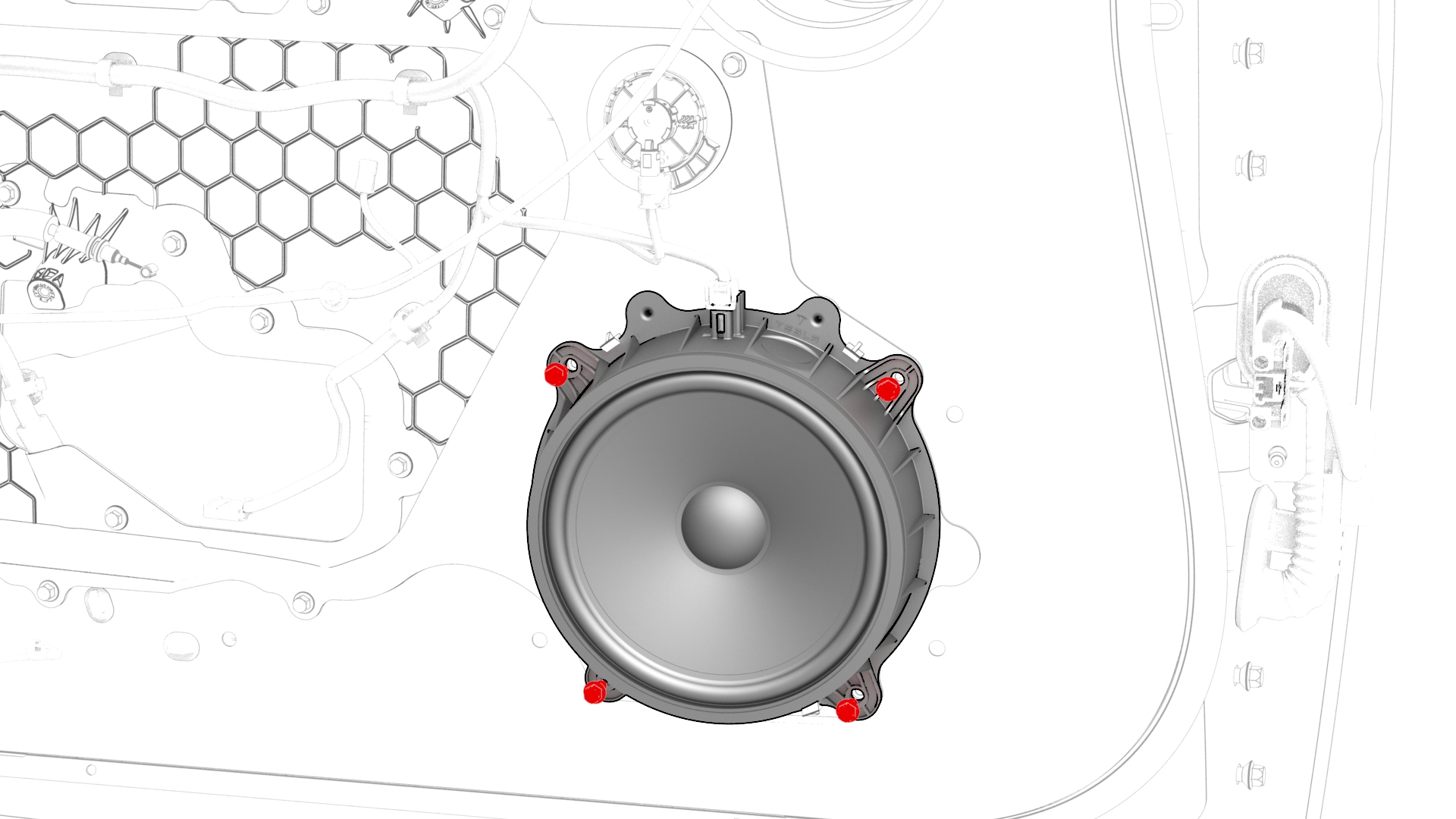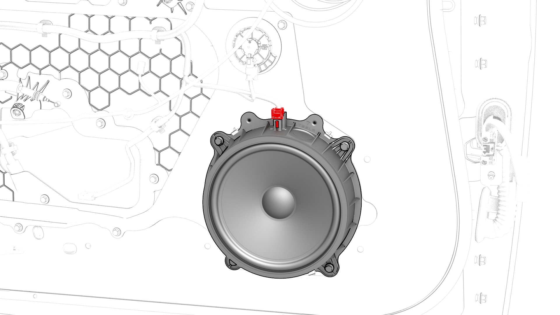![]() | 2 | Disconnect the electrical connector from the front door speaker. | |