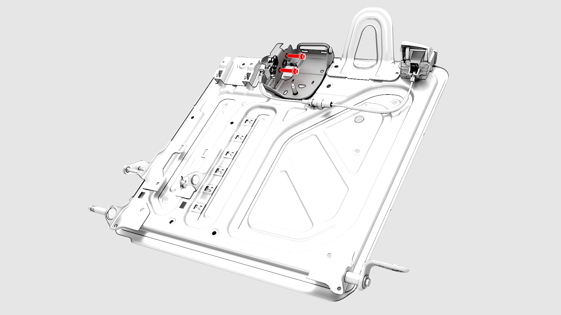 ![]() | 4 | Remove the bolts that attach the 2nd row LH seat back latch to the seat back, and then remove the latch from the seat back.![]() Torque 40 Nm ![]() |