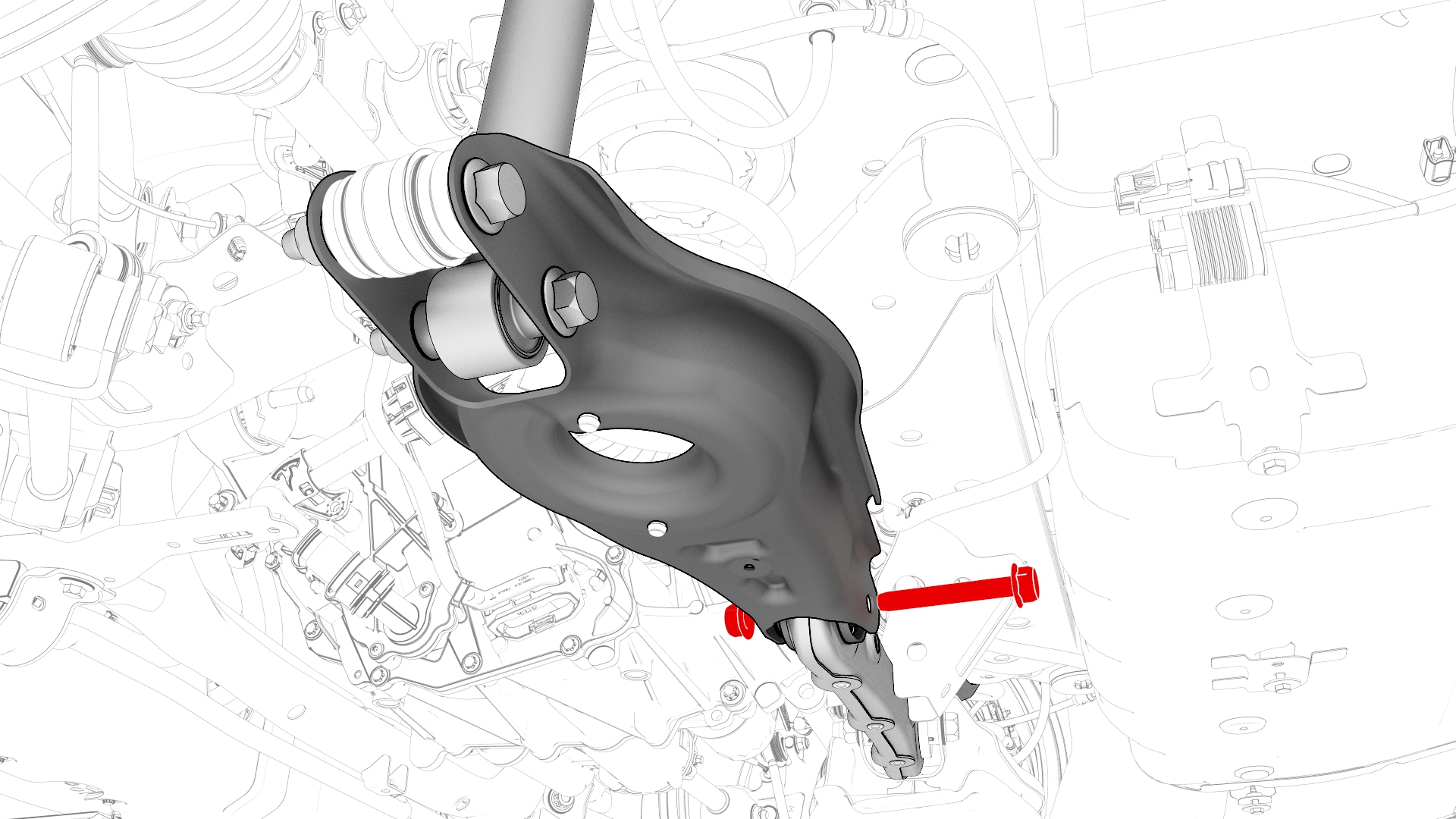 ![]() | 17 | With an assistant, install and hand-tighten the bolt and nut that attach the LH upper fore link to the rear subframe. | |