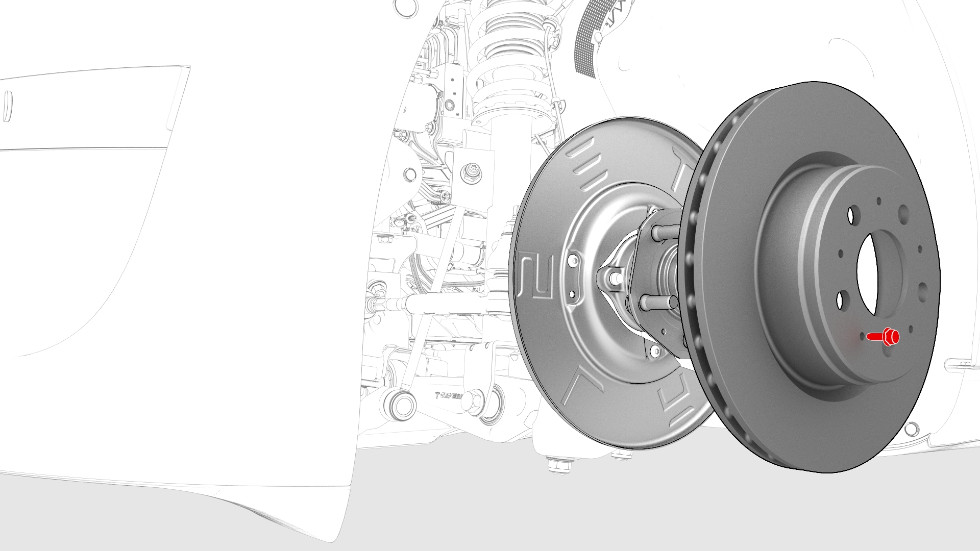 ![]() | 15 | Remove the bolt that attaches the LH rear brake rotor to the hub. Note: Remove the lug nut previously installed for early production vehicles.