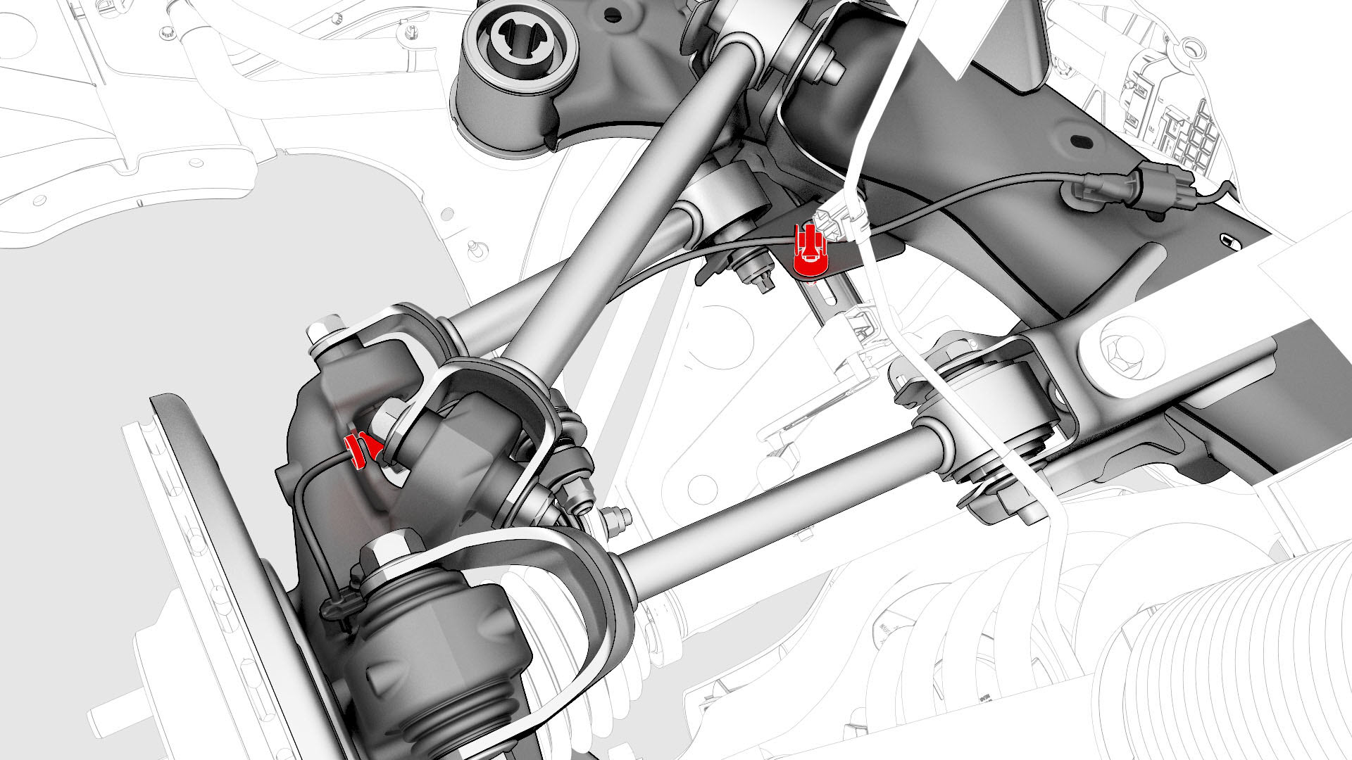 ![]() | 26 | Connect the subframe electrical harness to the LH rear ABS wheel speed sensor connector, and then fasten the clip that attaches the sensor connector to the subframe. | |
