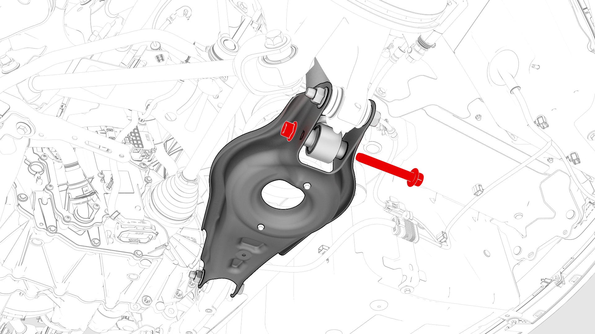 ![]() | 19 | With an assistant, install and hand-tighten the nut and bolt that attach the LH upper aft link to the rear subframe. | |