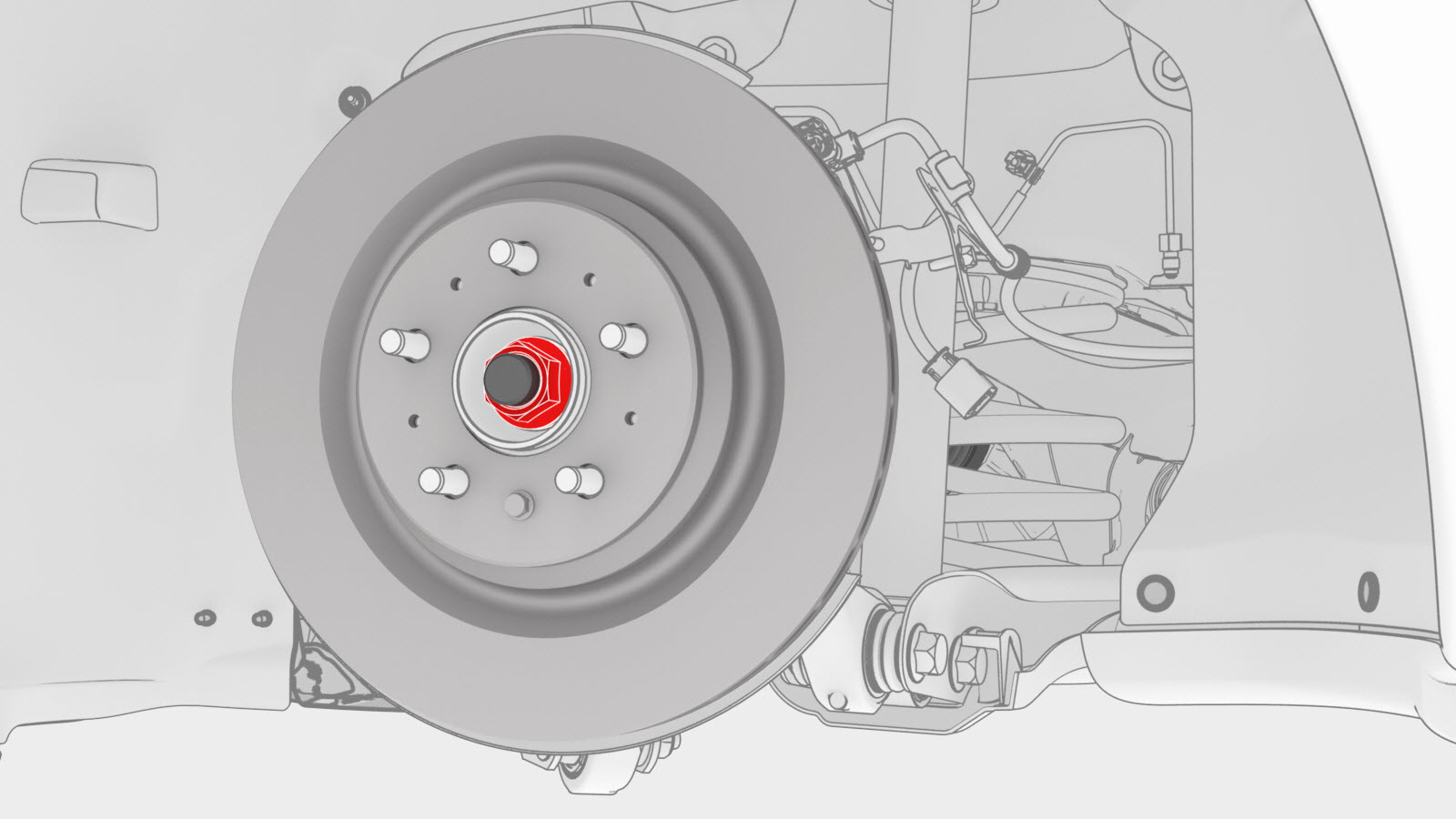 | 16 | Install the hub puller onto the LH rear rotor, and then install and hand-tighten the puller washers (x5) and the lug nuts (x5) onto the rotor studs. | ||