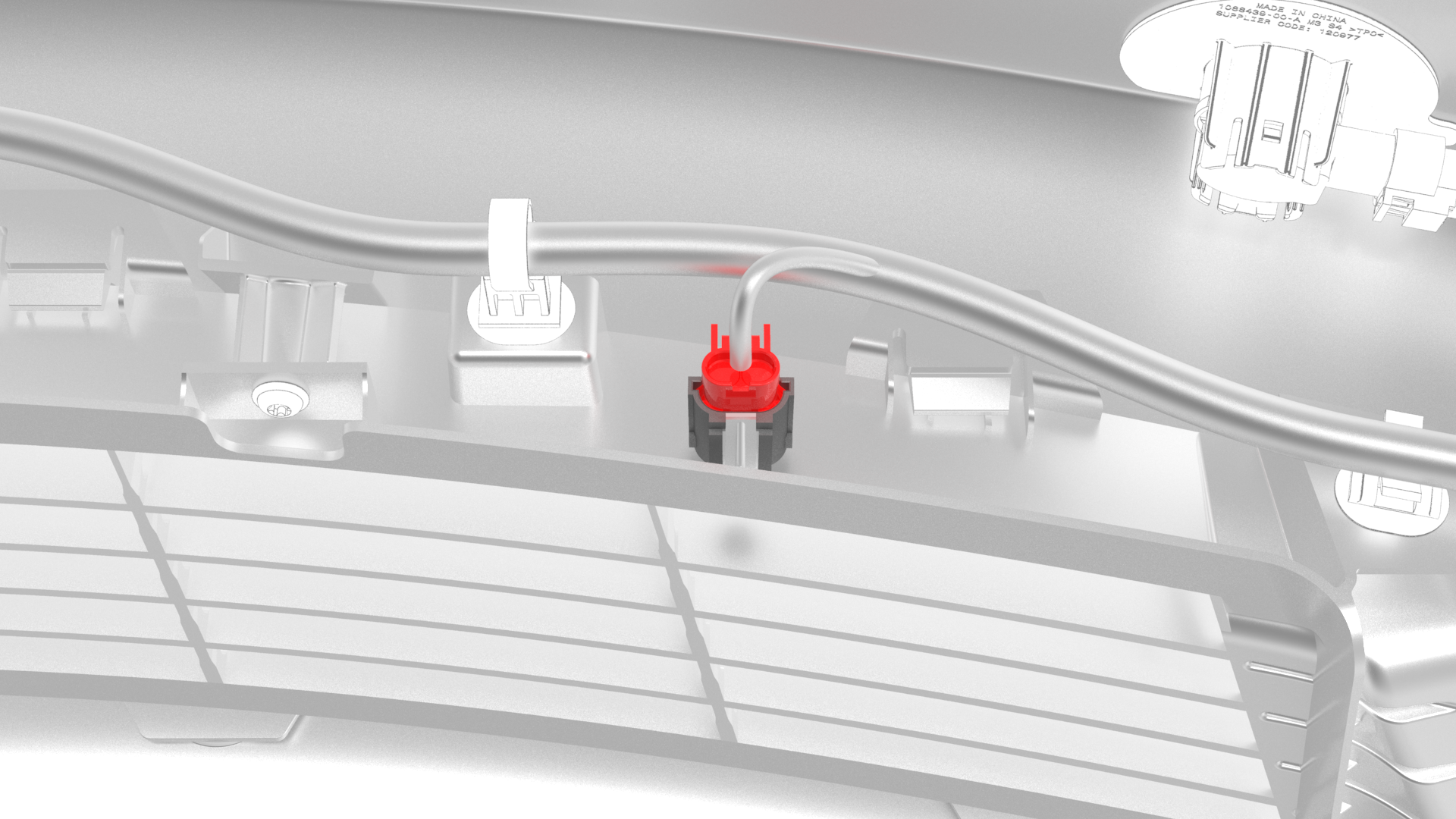 ![]() | 3 | Release the clip that attaches the ambient air temperature sensor to the lower grille, and then remove the sensor from the lower grille. Note: Press the tab that attaches the ambient air temperature sensor and slide up to remove it from the lower grille.