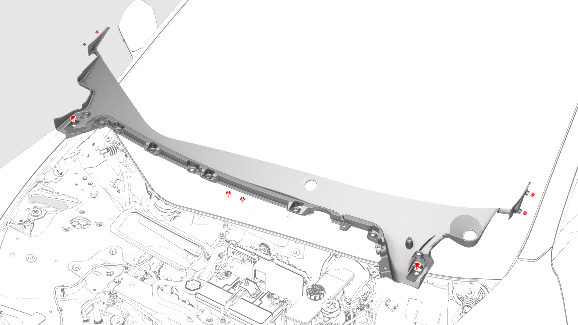 ![]() | 3 | Connect the clips that attach the cowl screen to the vehicle. | |