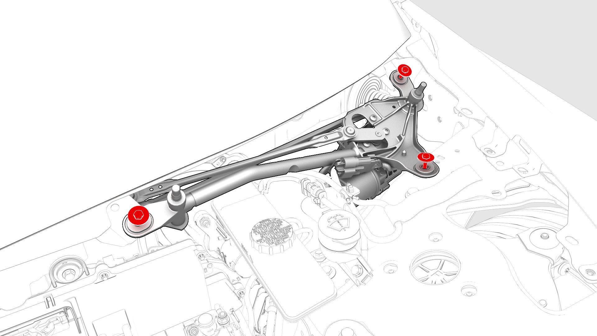![]() | 1 | Install the bolts that attach the wiper motor to the vehicle.![]() Torque 7 Nm | |