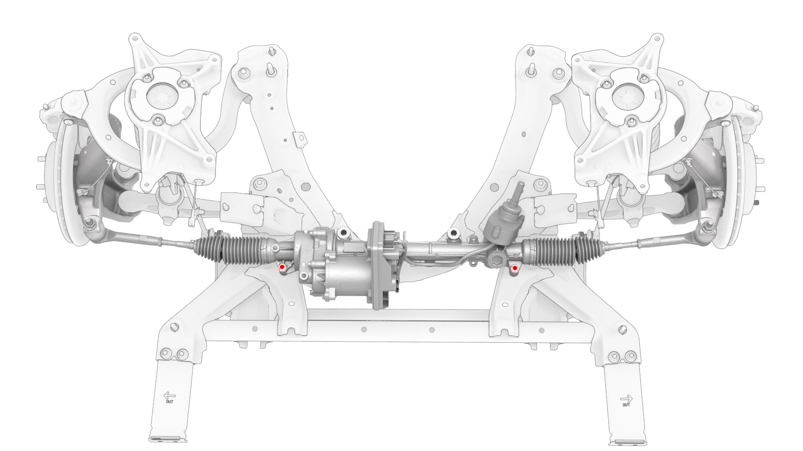 ![]() | 2 | Remove the outer bolts that attach the steering rack to the front subframe. | |