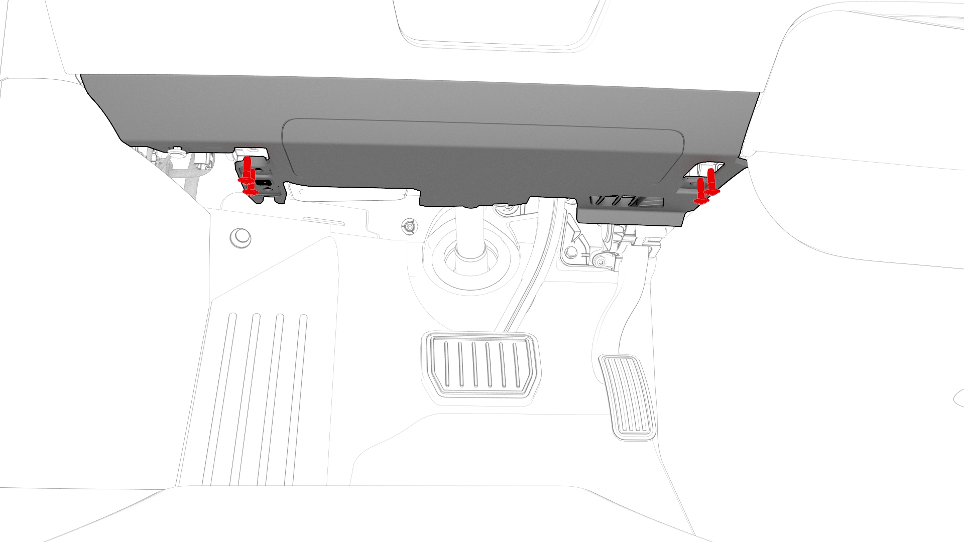 ![]() | 4 | Remove the T20 bolts (x2) that attach the driver knee airbag to the vehicle.![]() Torque 2 Nm | |