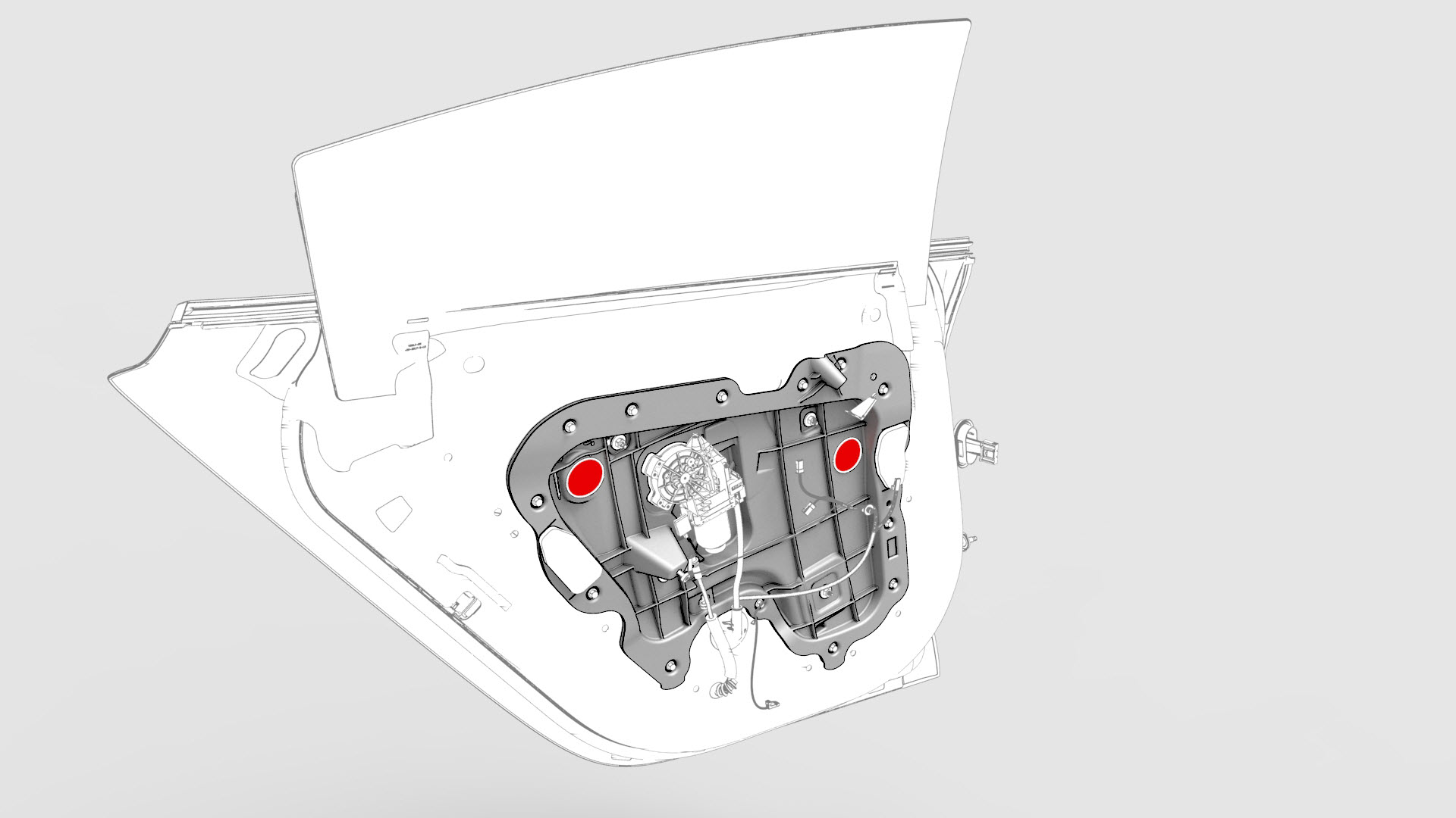 | 2 | Remove the LH rear door inner belt seal from the rear door. See Seal - Inner Belt - Rear Door - LH (Remove and Replace). | ||