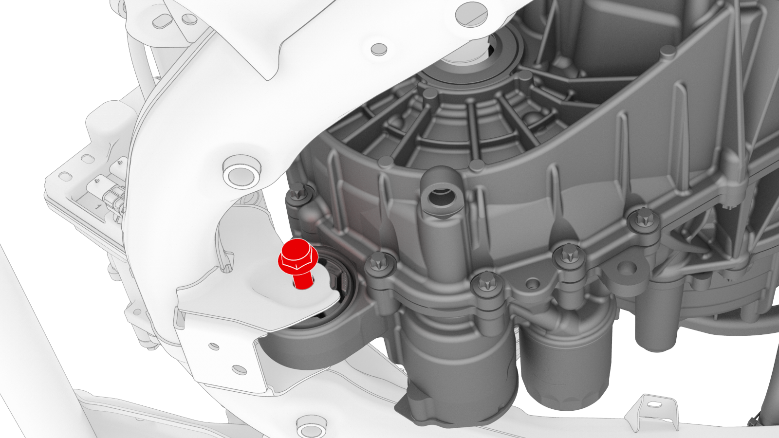 ![]() | 19 | Remove the bolt that attaches the front drive unit to the front subframe. | |