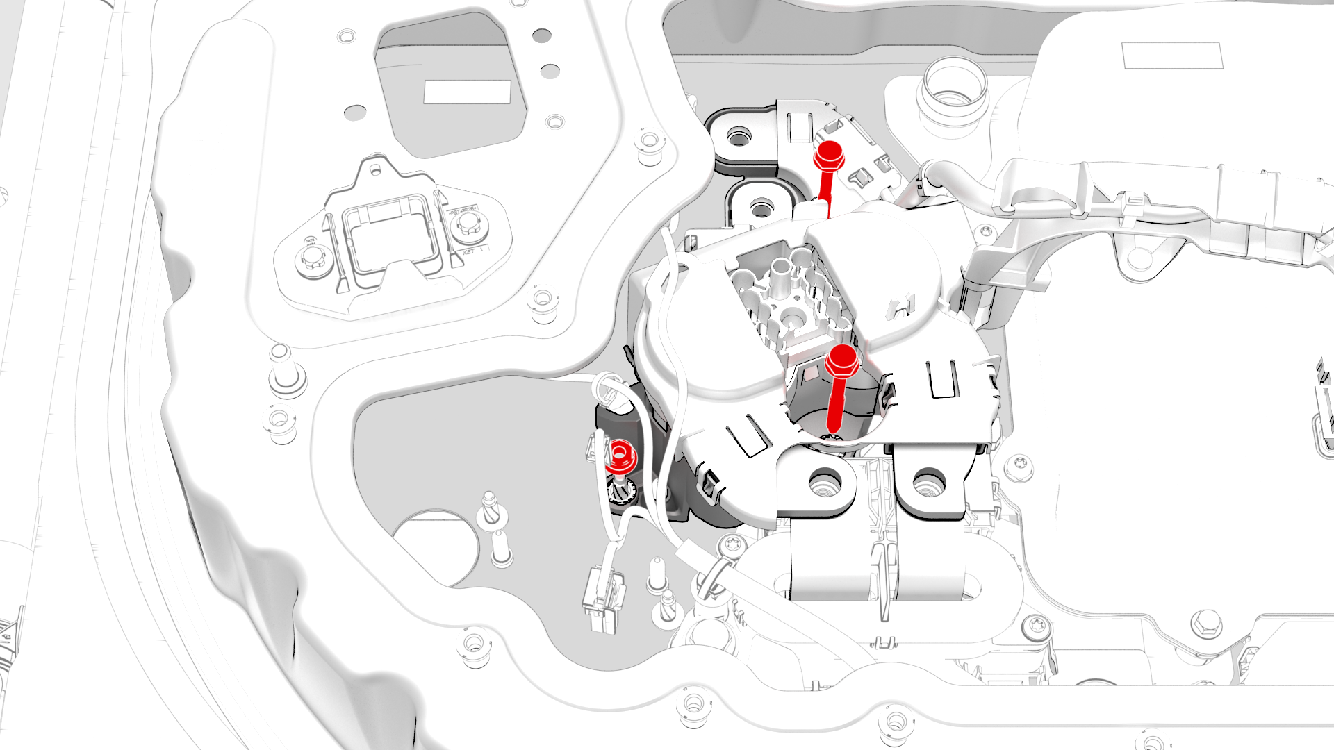 | 2 | Install the HV battery fast charge contactor to the insulator. Note: Align the 2 guides as the fast charge contactor is installed on the insulator.