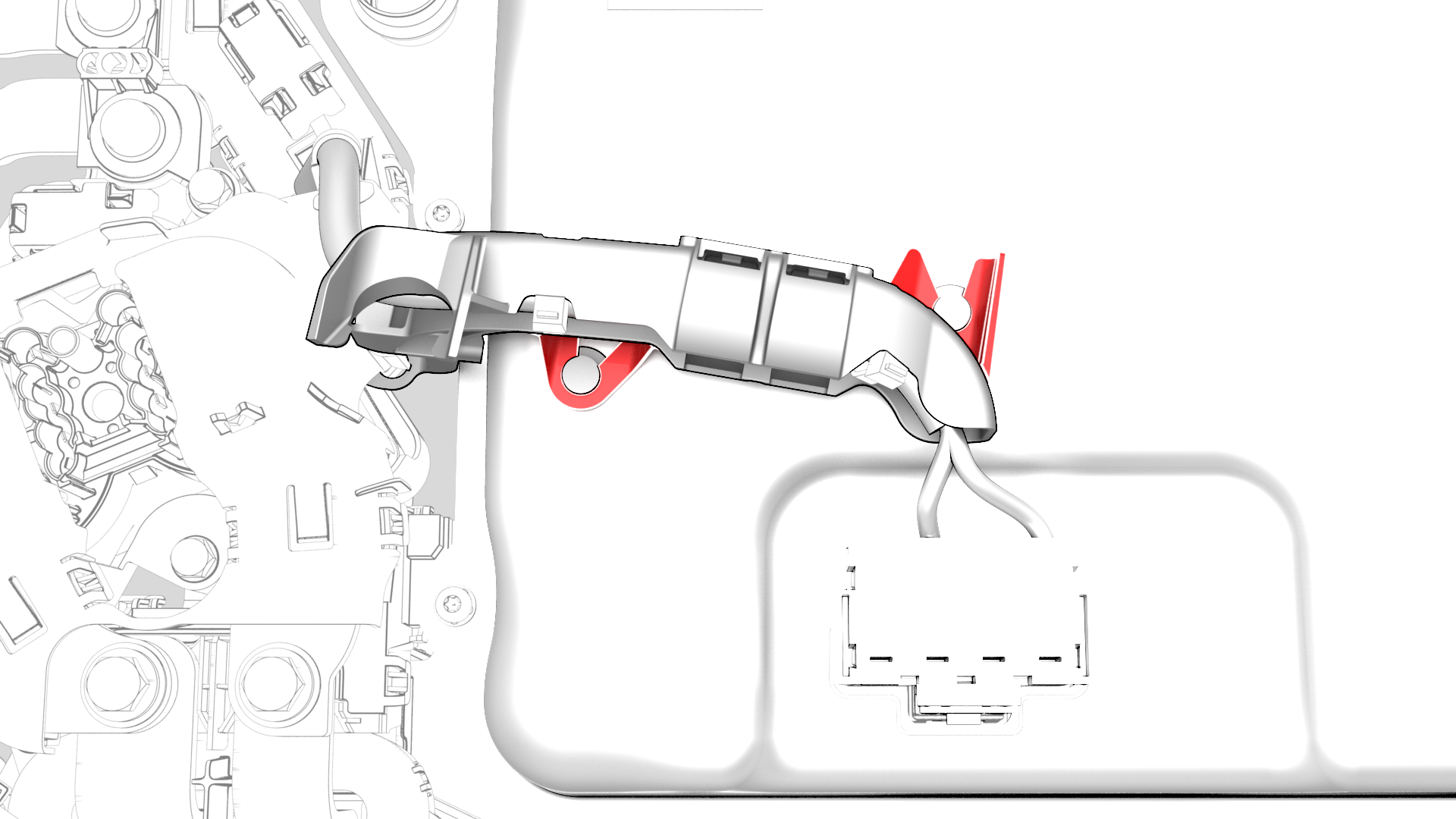 | 23 | Install the power conversion system coolant output tube. See Tube - Output - Coolant - Power Conversion System (Remove and Replace). Caution: Make sure that the coolant output tube is securely connected by firmly pressing down on the fittings, verify that both clips have fully engaged the barb on the power conversion system and battery flange, and then pull up on the fittings to check retention.