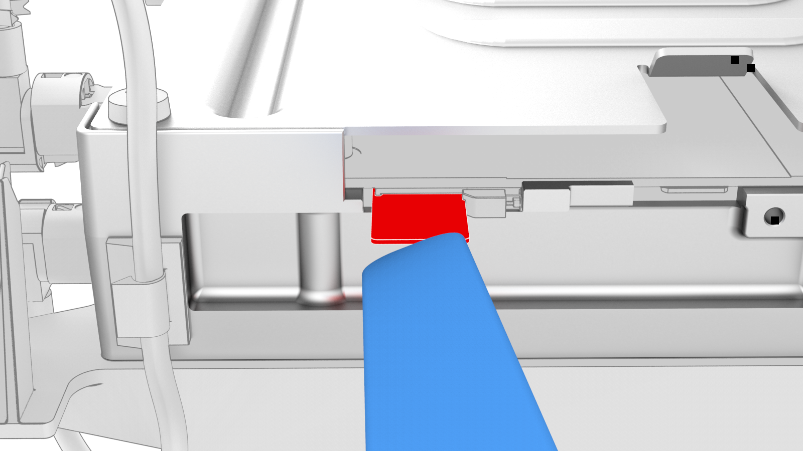 ![]() | 2 | Use a trim tool to move the catch to the right, and release the SIM card from the slot in the car computer. | |