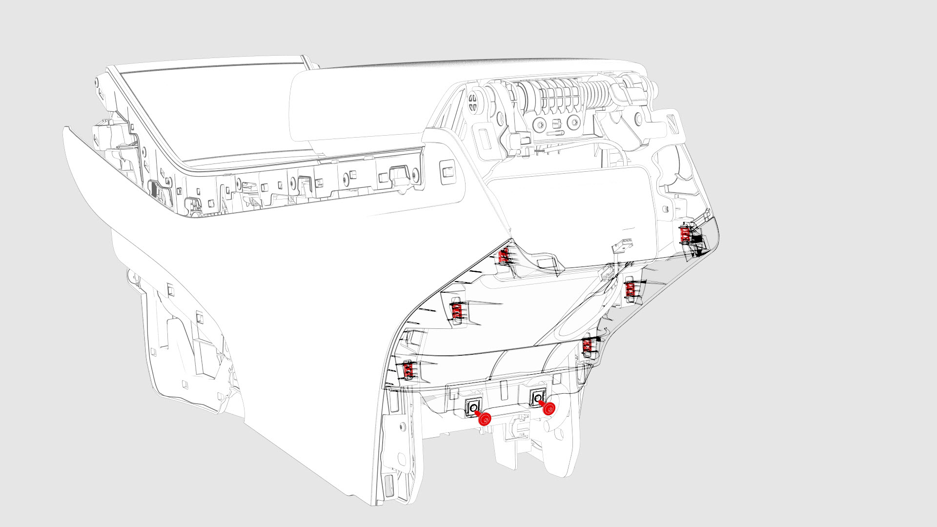 ![]() | 3 | Remove the bolts (x2) and release the clips (x6) that attach the center console end panel to the center console, and then remove the end panel from the console.![]() Torque 1.1 Nm |