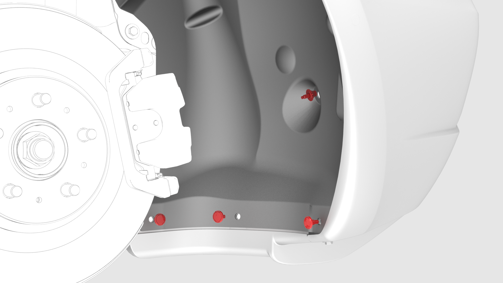| 6 | Release the clips and the push nut that attach the rear portion of the LH rear wheel liner to the body.![]() | ||