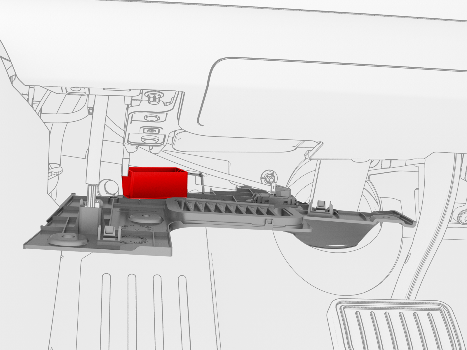 ![]() | 3 | APAC vehicles only: Disconnect the OBD-II connector from the driver footwell cover. | |