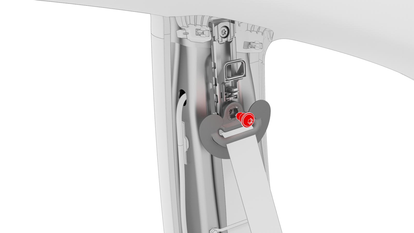 | 11 | Slide the seatbelt through the hole in the LH upper B-pillar trim, and then set the trim aside. | ||