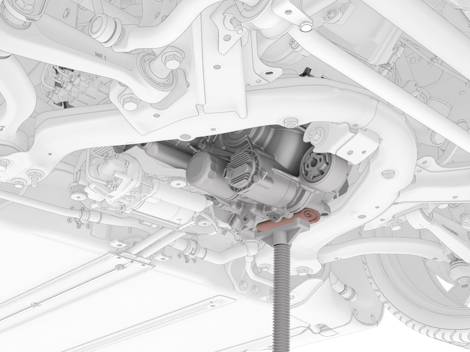 ![]() | 5 | Install the bolt that attaches the front drive unit to the front subframe.![]() Torque 80 Nm | |