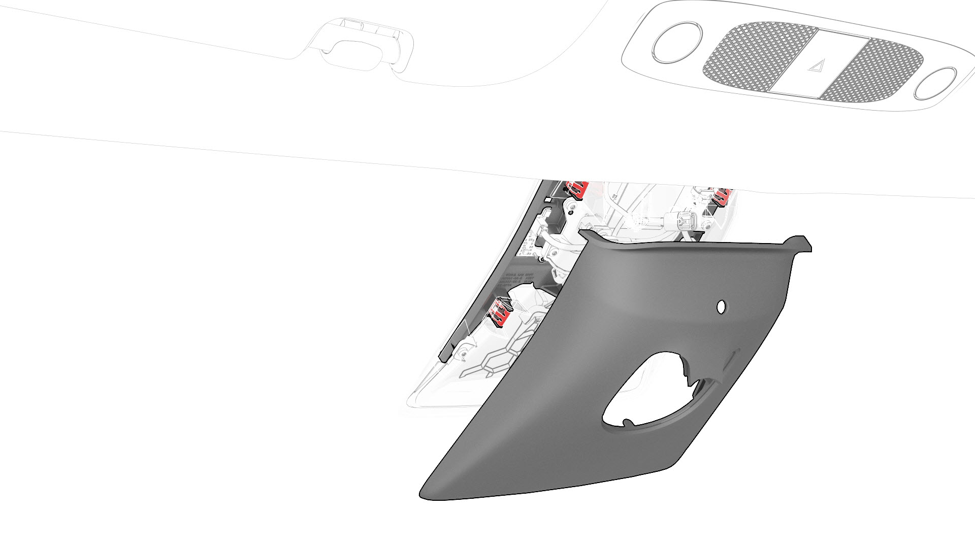 | 1 | Remove the rear view mirror. See Mirror - Rear View (Remove and Replace). | ||