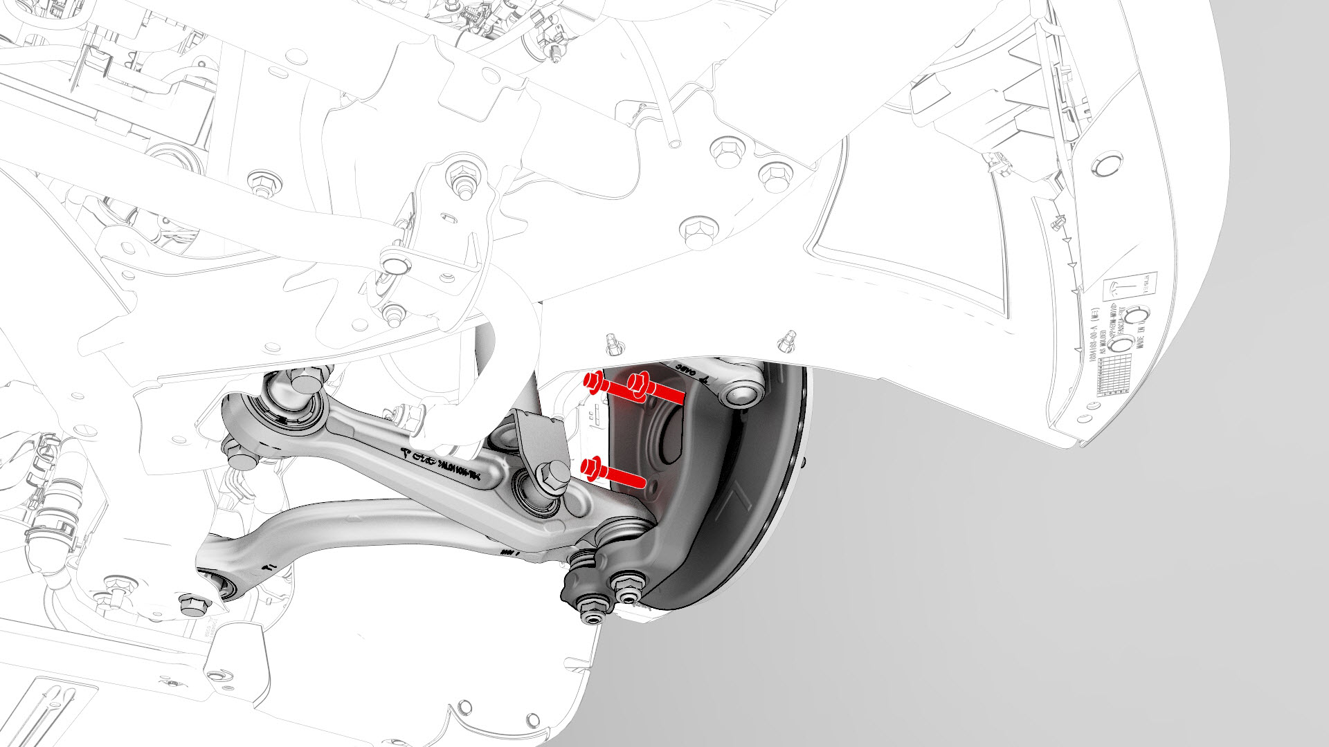 ![]() | 5 | Install the new bolts that attach the LH front brake caliper to the LH front knuckle, and then remove the S-hook from the vehicle.![]() Torque 94 Nm Note: Mark the bolts with a paint pen.