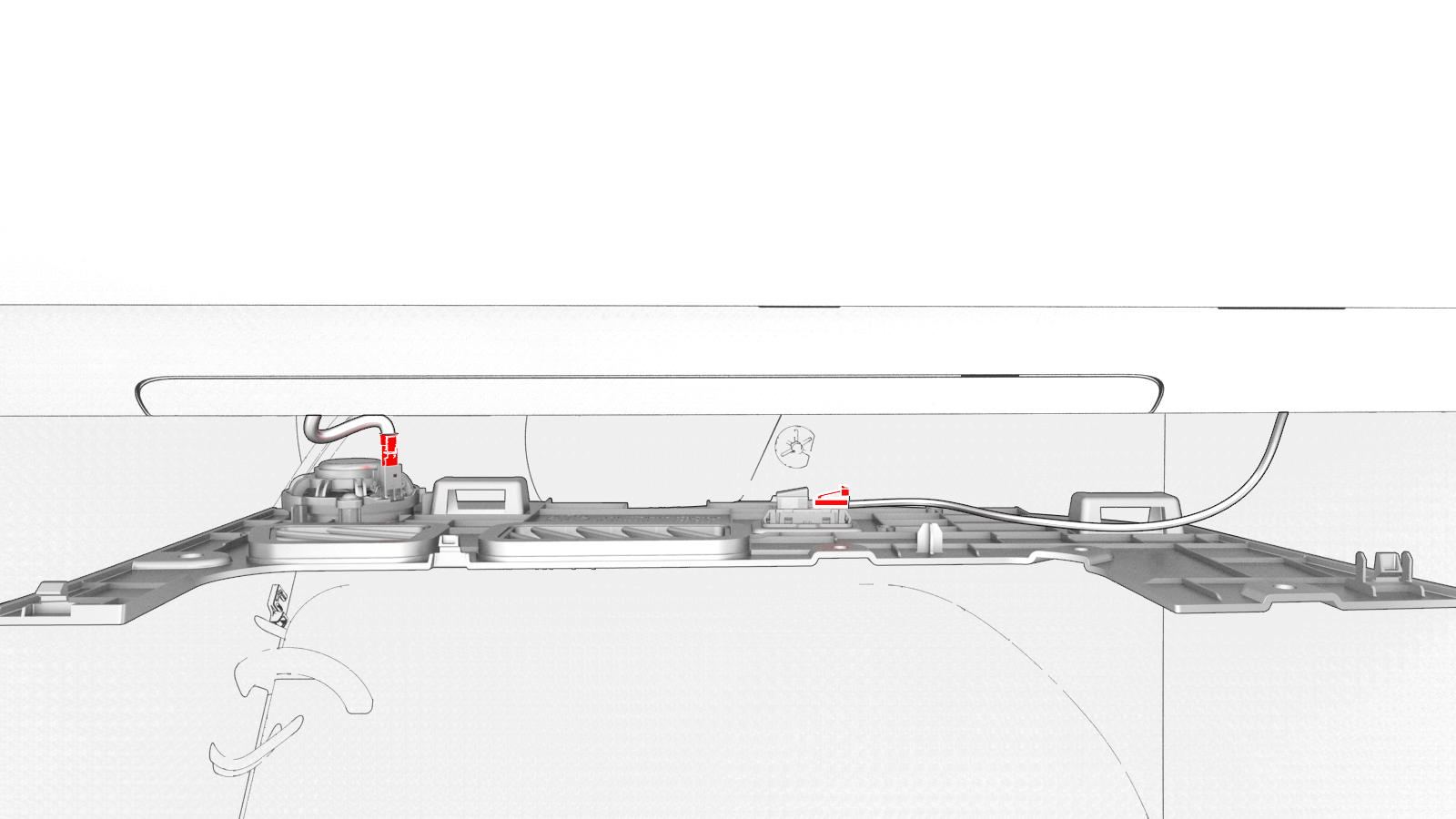 ![]() | 2 | Disconnect the electrical wiring harness connectors from the puddle light and emergency speaker. | |